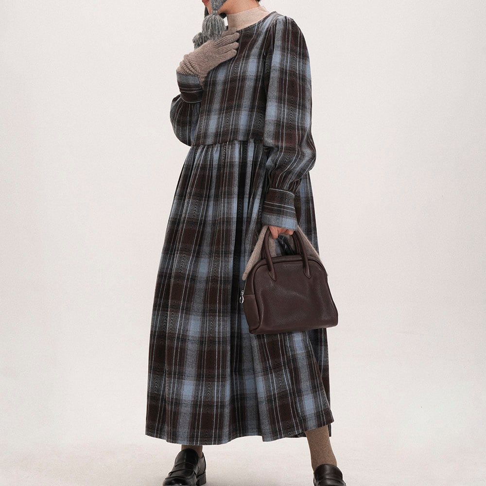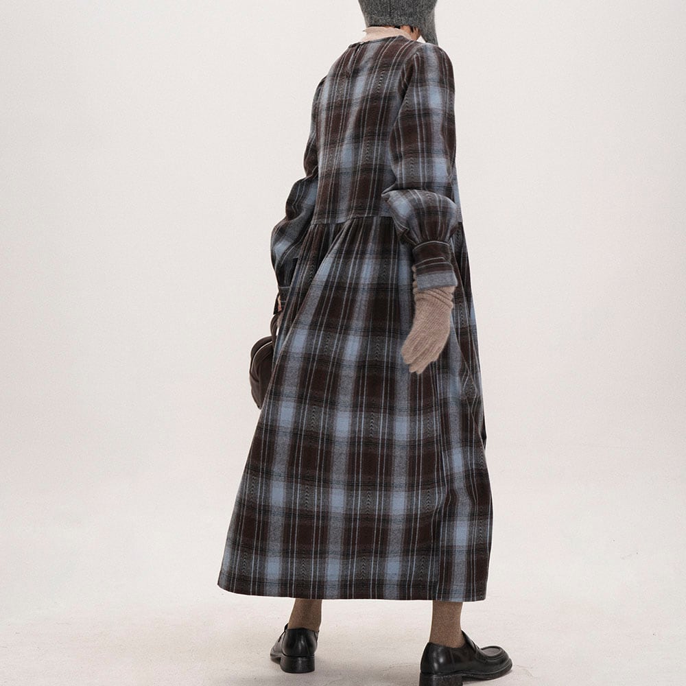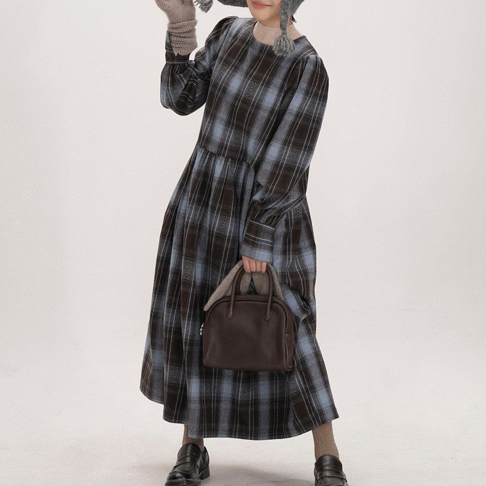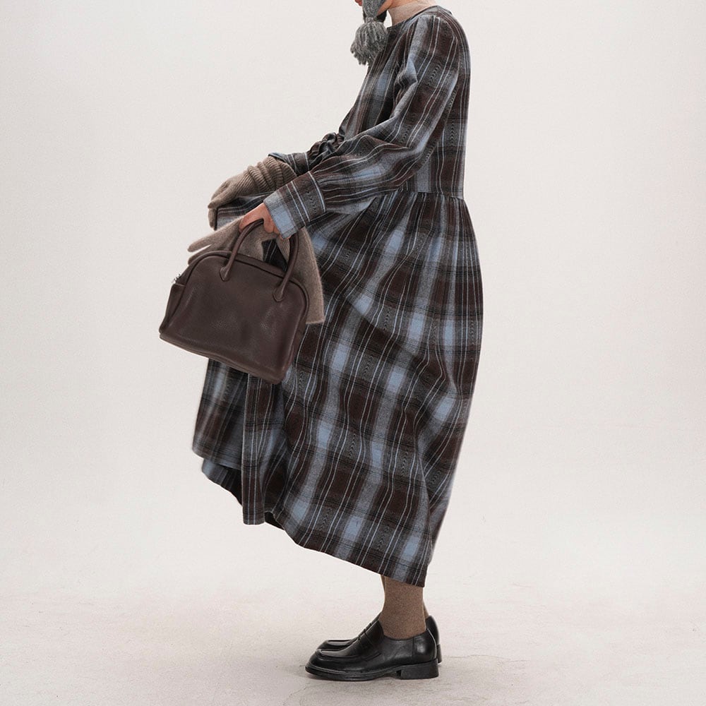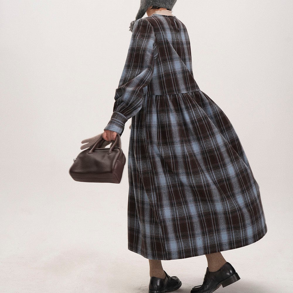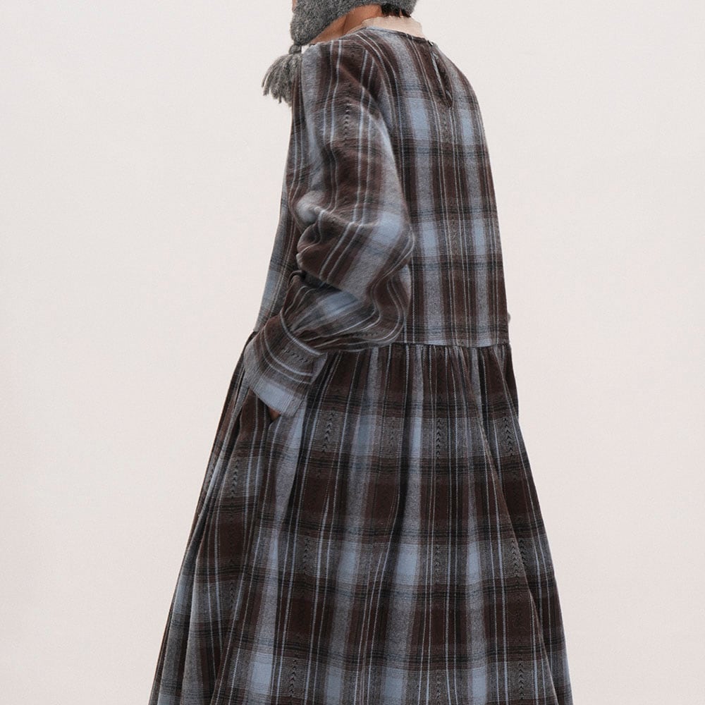 柔らかなチェック柄が優しい雰囲気をつくるロングワンピースです♡