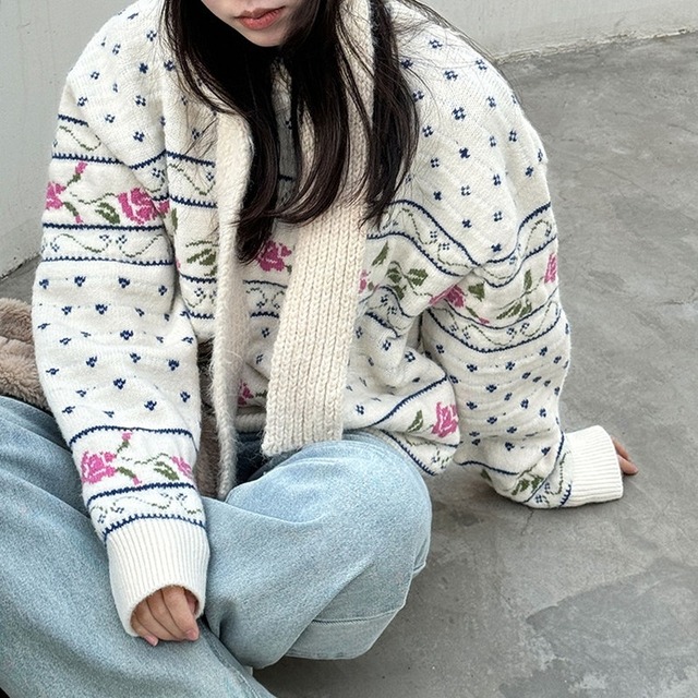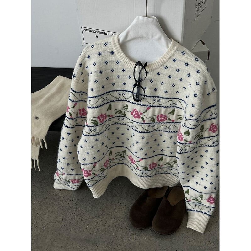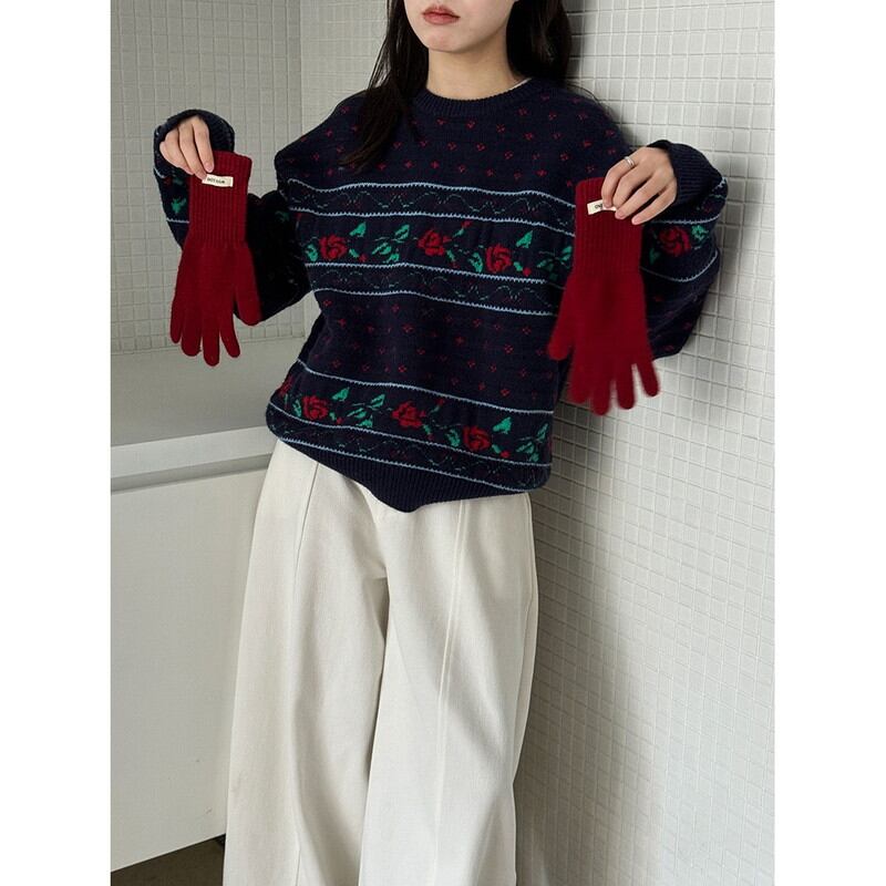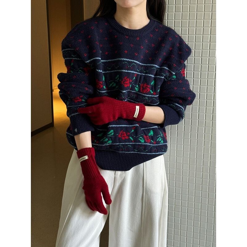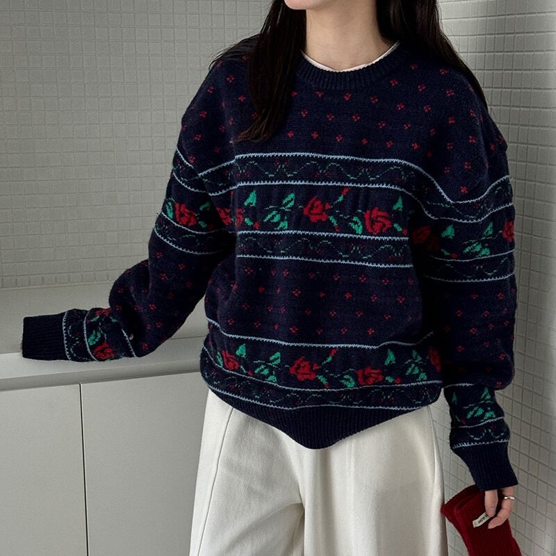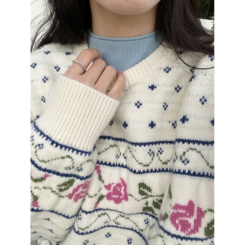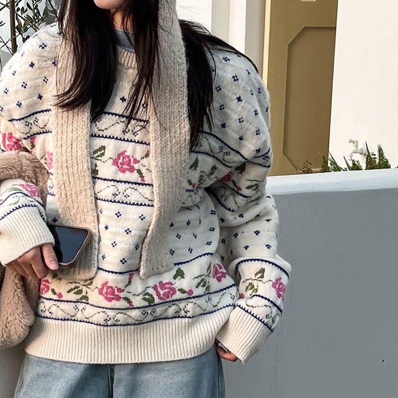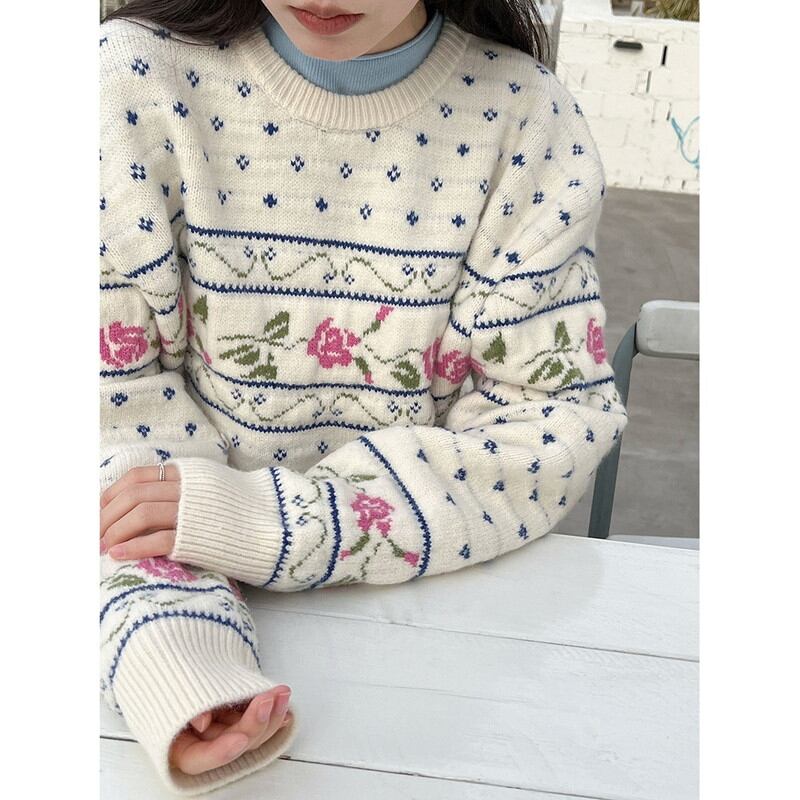 flower rose retro round-neck knit 2litr06059