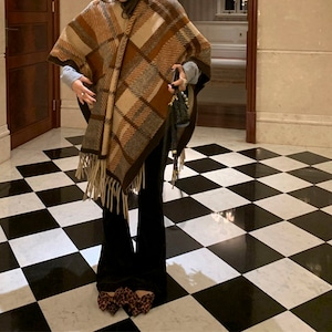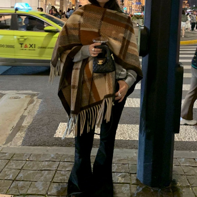 やわらかなウール素材で、ふんわり体を包む大判ポンチョマフラーです♡