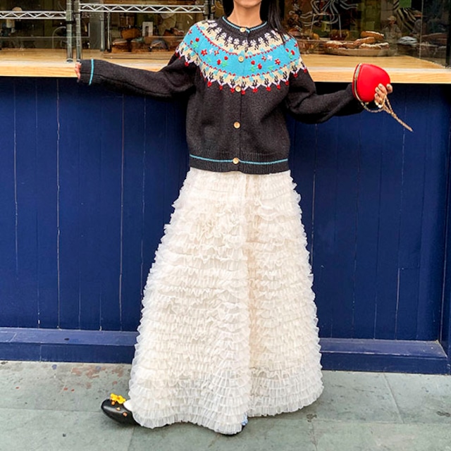 繊細なフリルをたっぷり重ねた、動くたびにふわっと揺れるロングスカートです♡