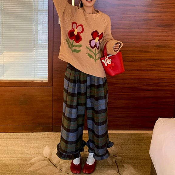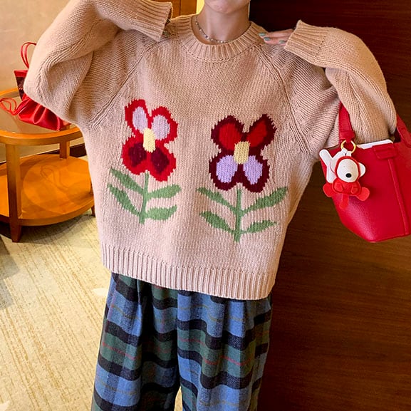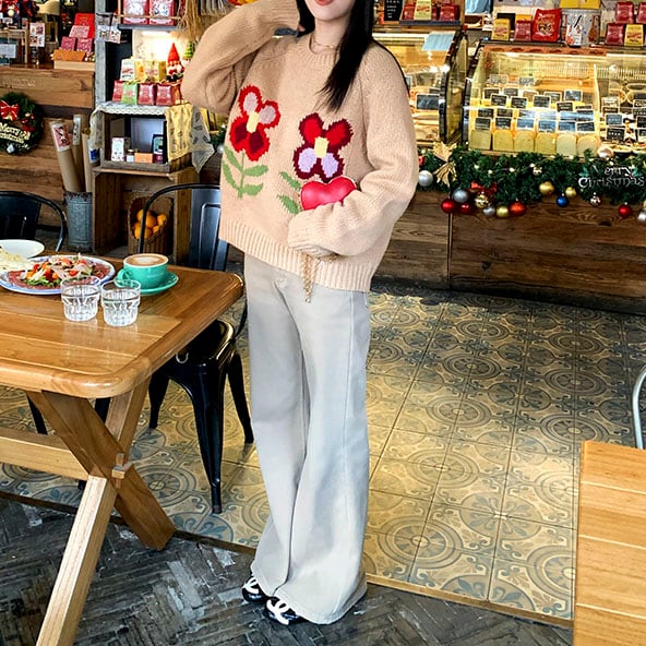 Flower motif knit pullover 2litr06074