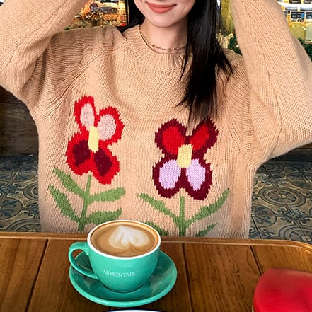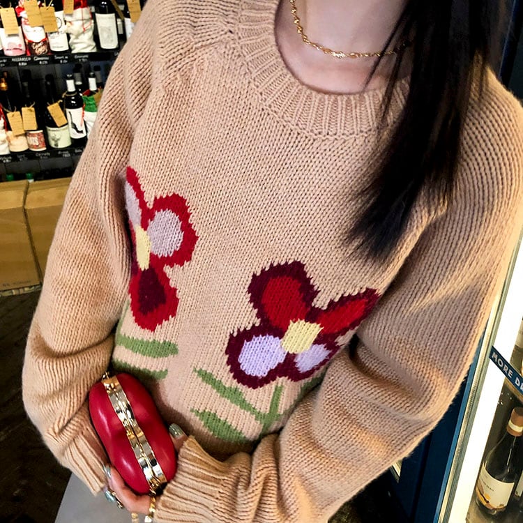 手描き風のフラワーモチーフが目を惹く、やさしい雰囲気のニットプルオーバーです♡