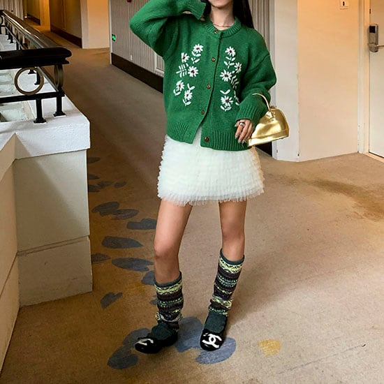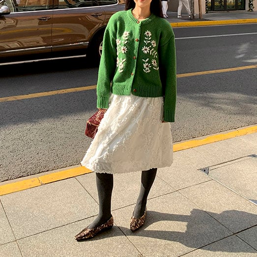 可憐なフラワー刺繍が目を惹く、やさしい雰囲気のニットカーディガンです♡