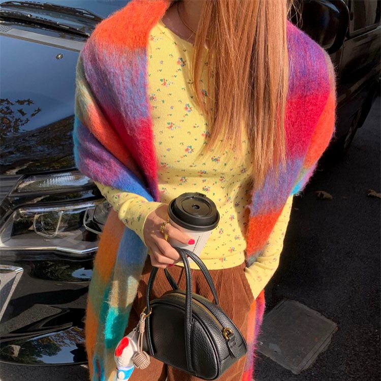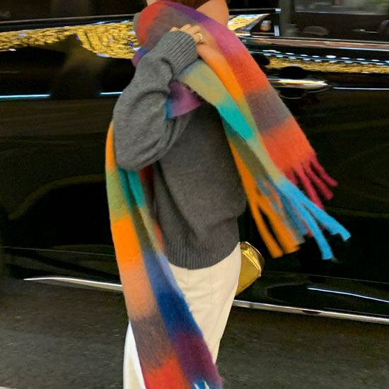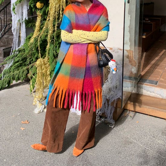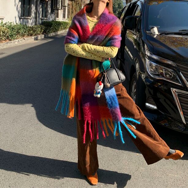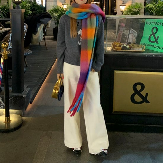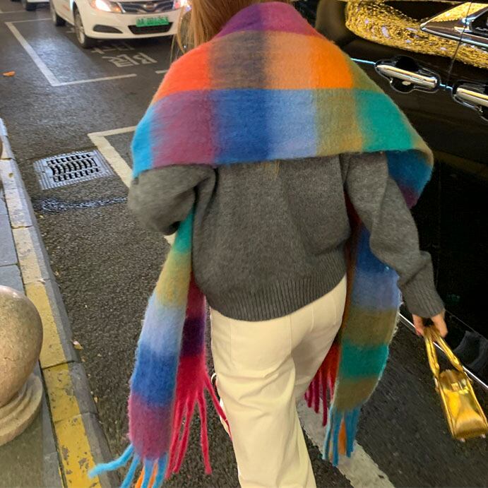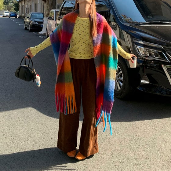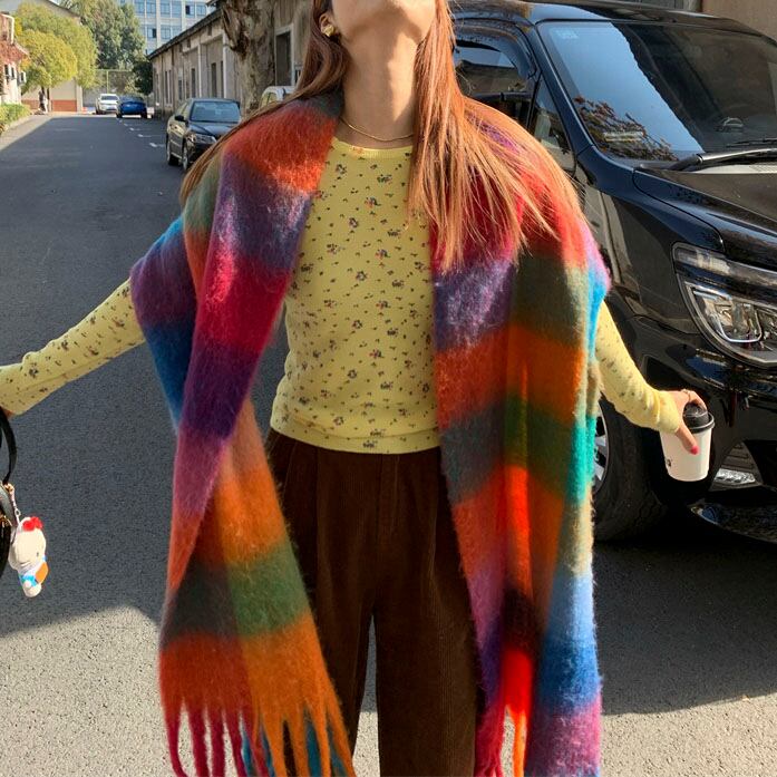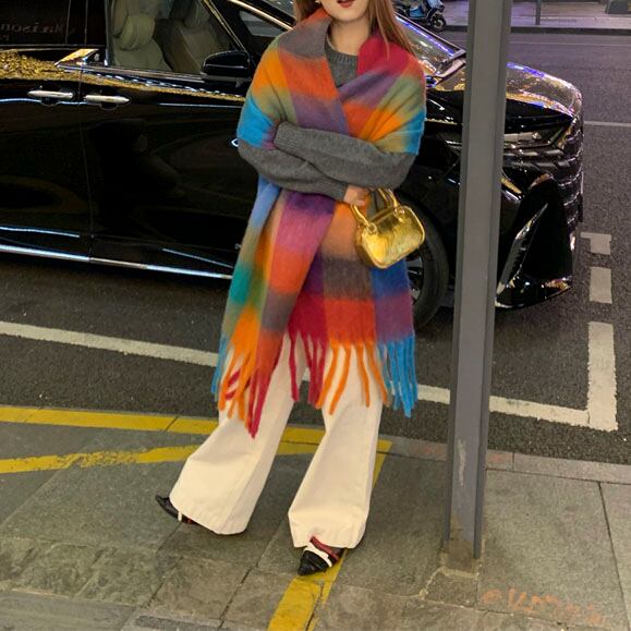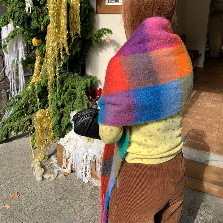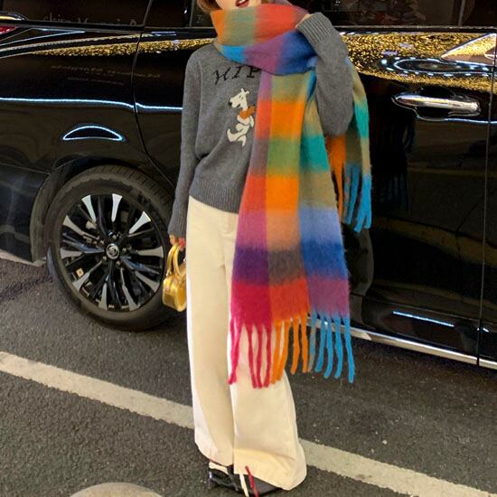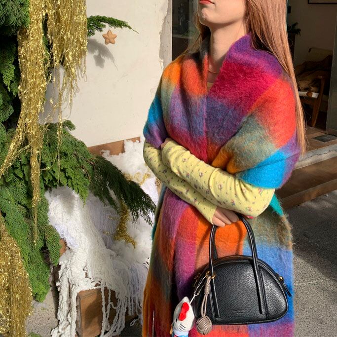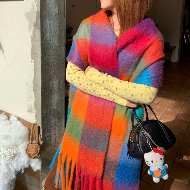 鮮やかな配色が目を惹く、存在感たっぷりの大判チェックストールです♡
