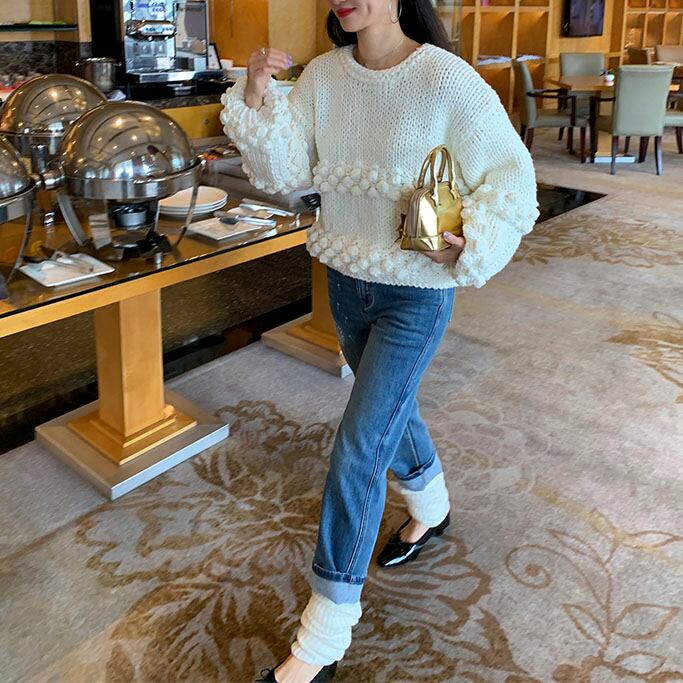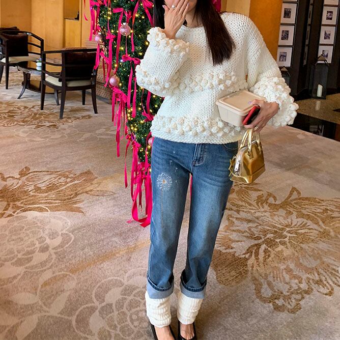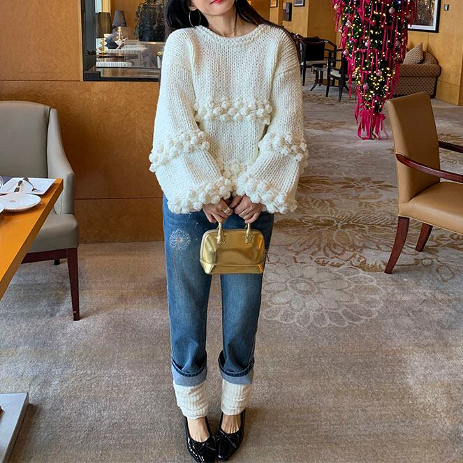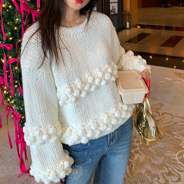 Pom-pom design knit pullover 2litr06081