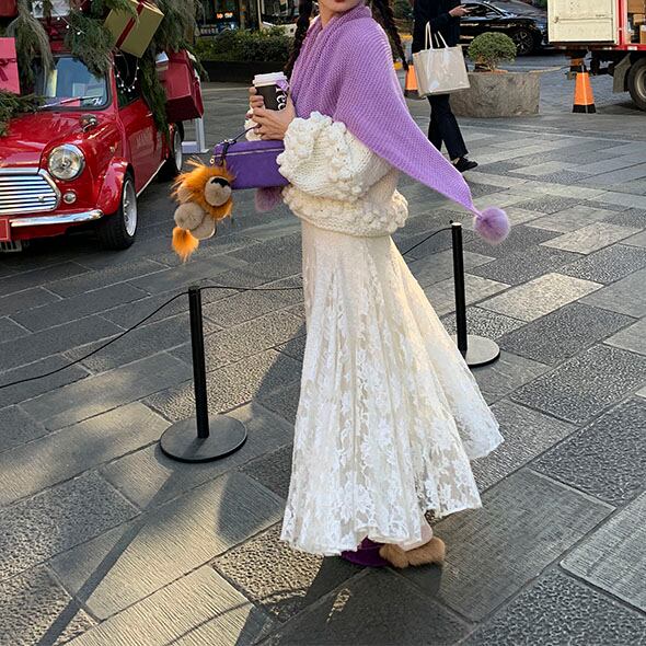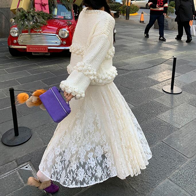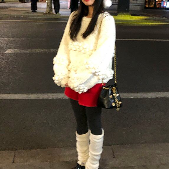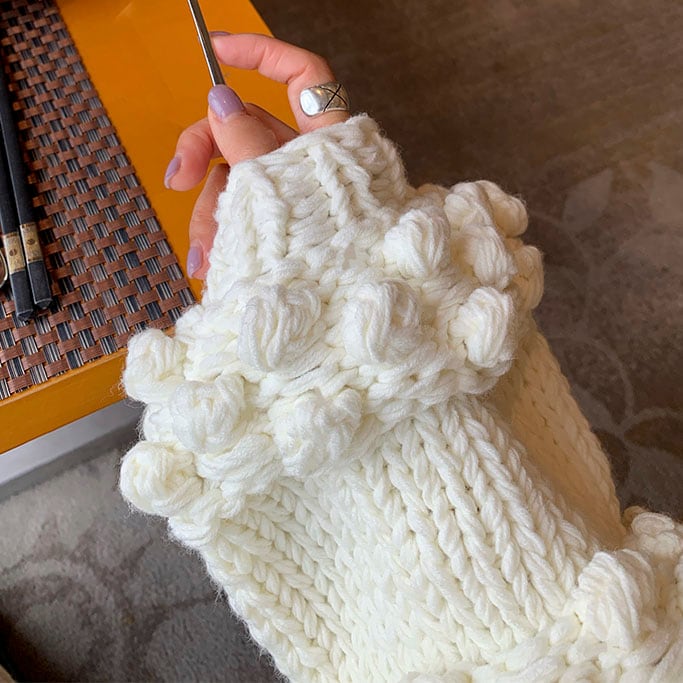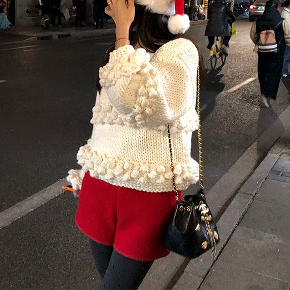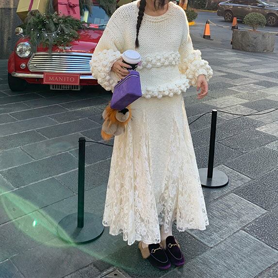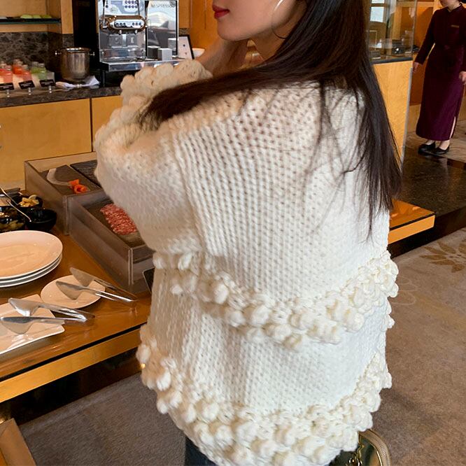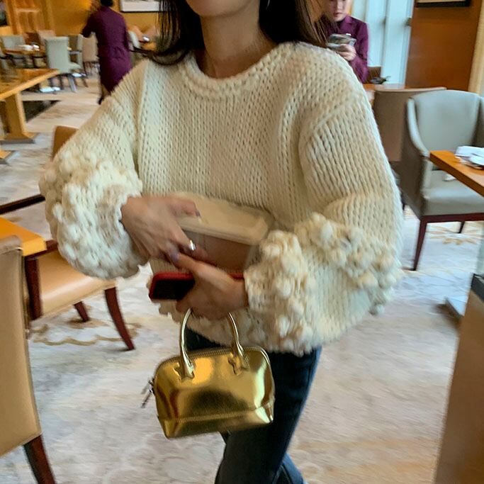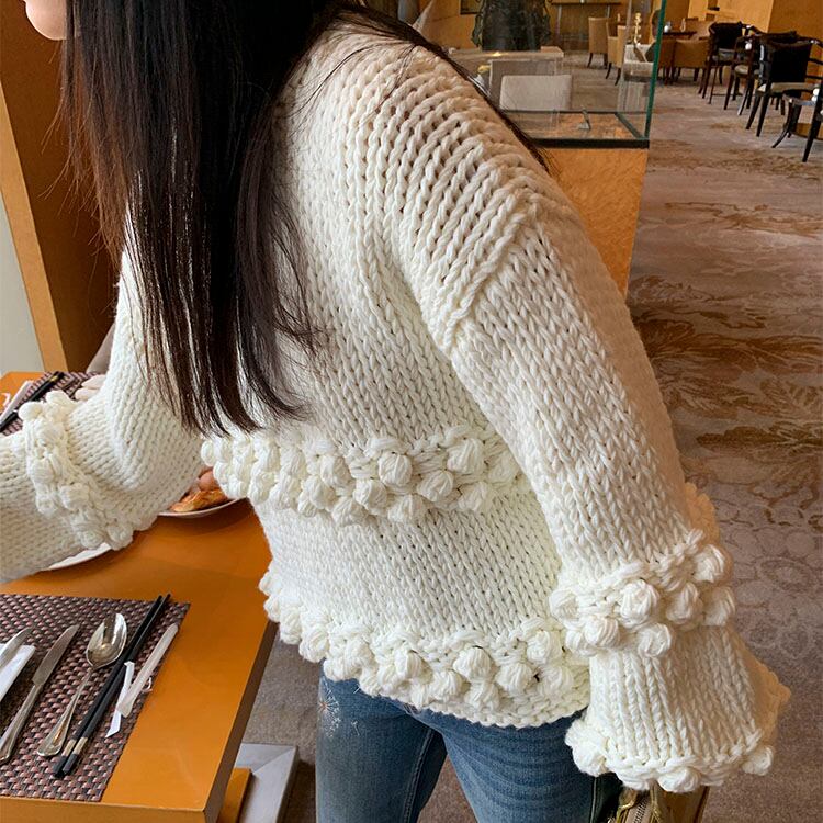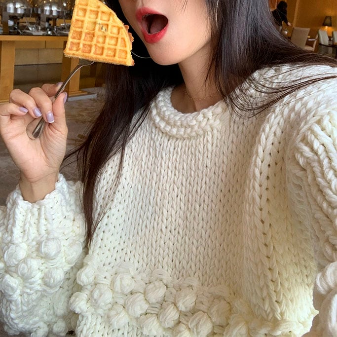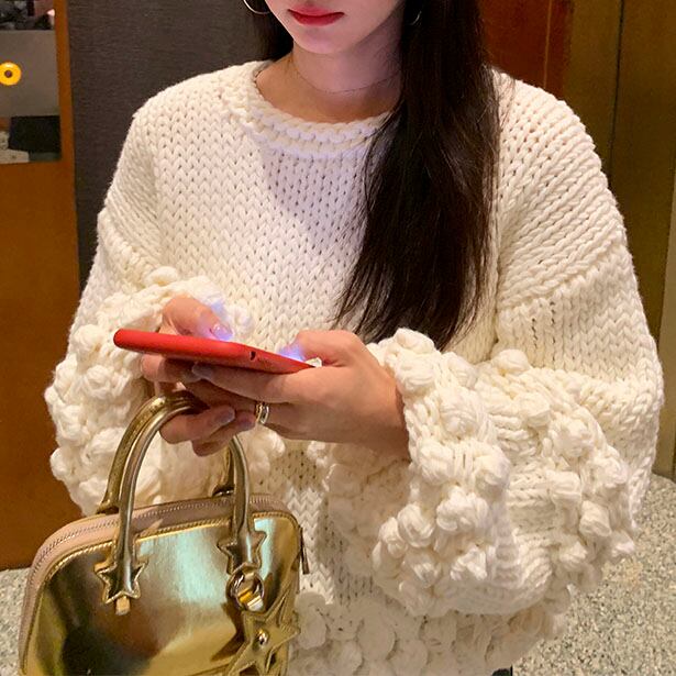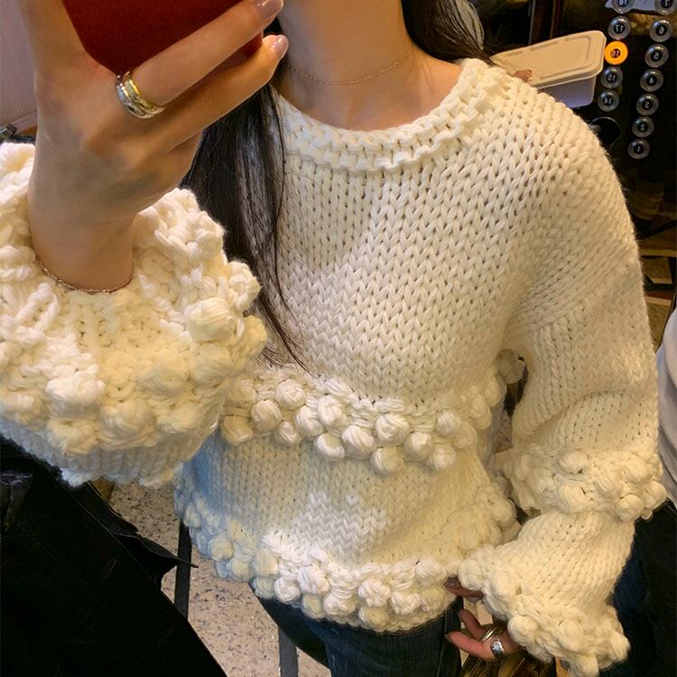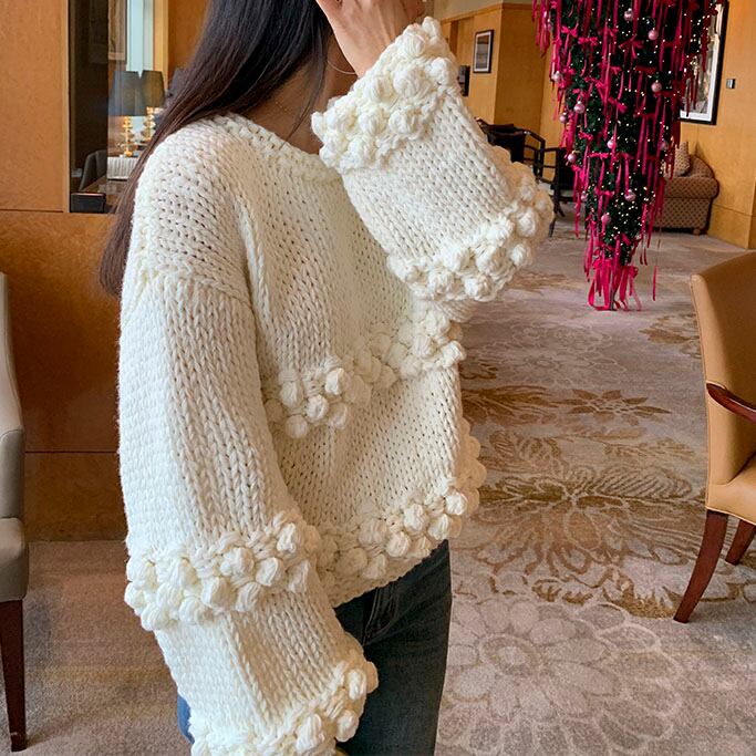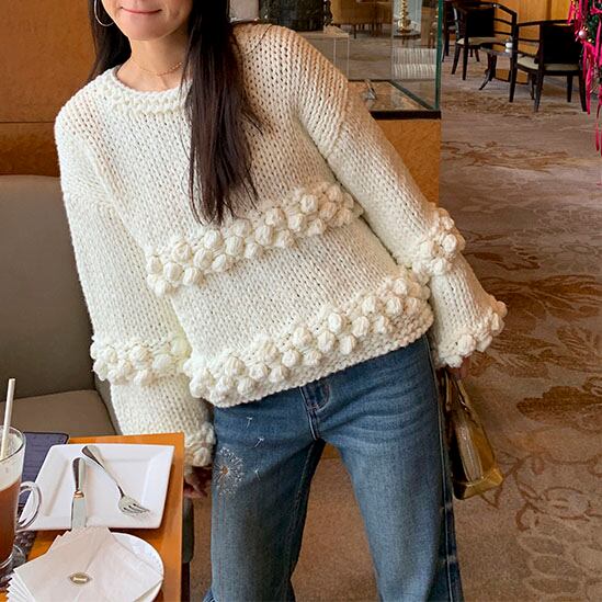 立体感のあるポンポン編みが目を惹く、存在感たっぷりのニットプルオーバーです♡