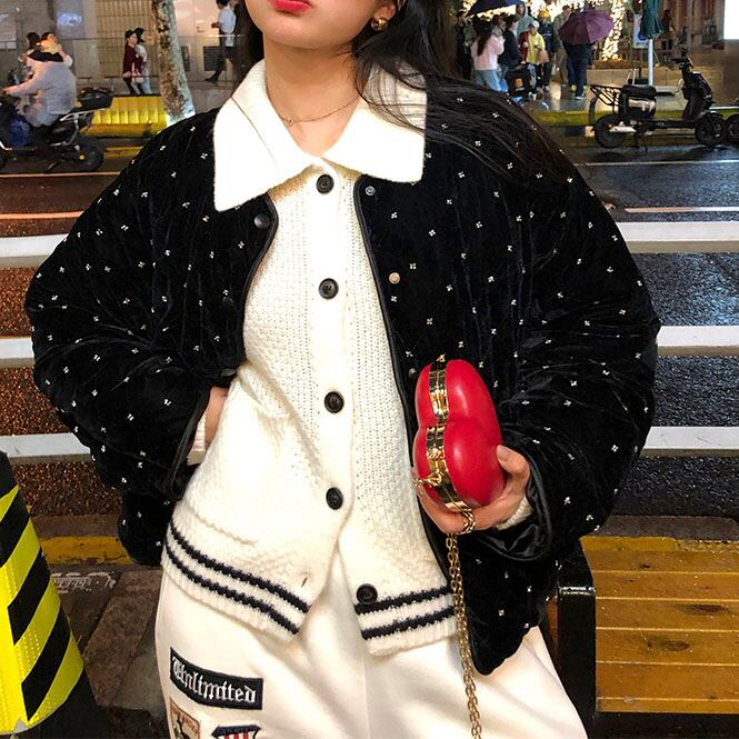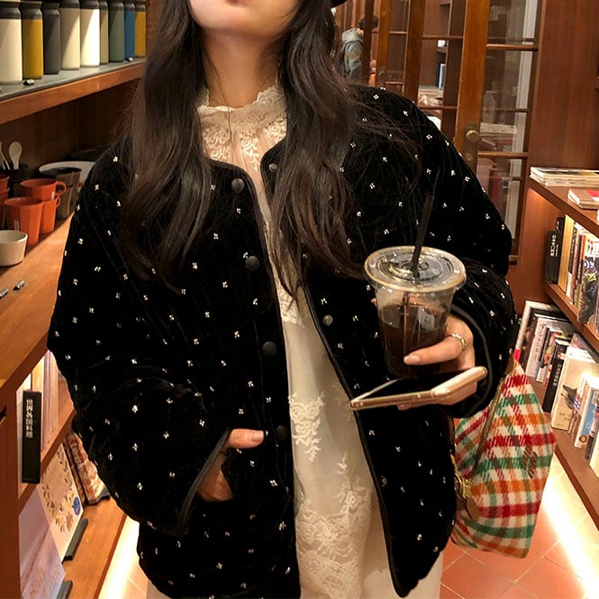 Velvet quilted short jacket 2litr06082