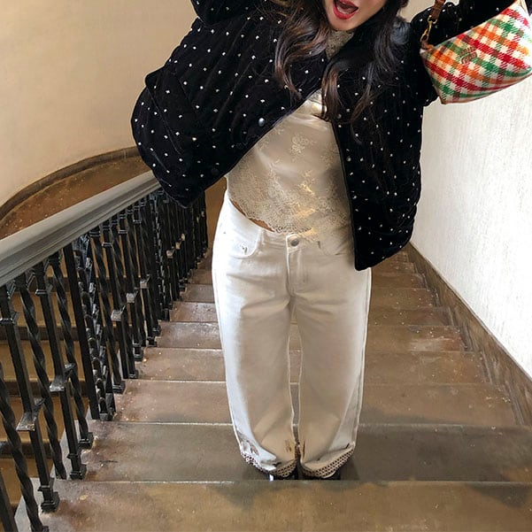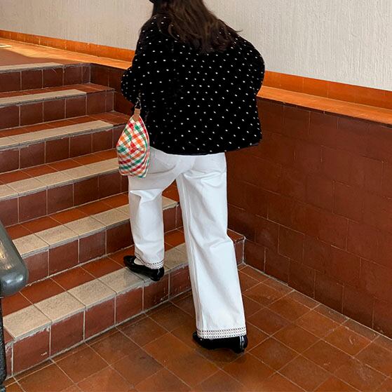 コンパクトな丈感がバランスよく、コーデにさりげない華やかさをプラス!