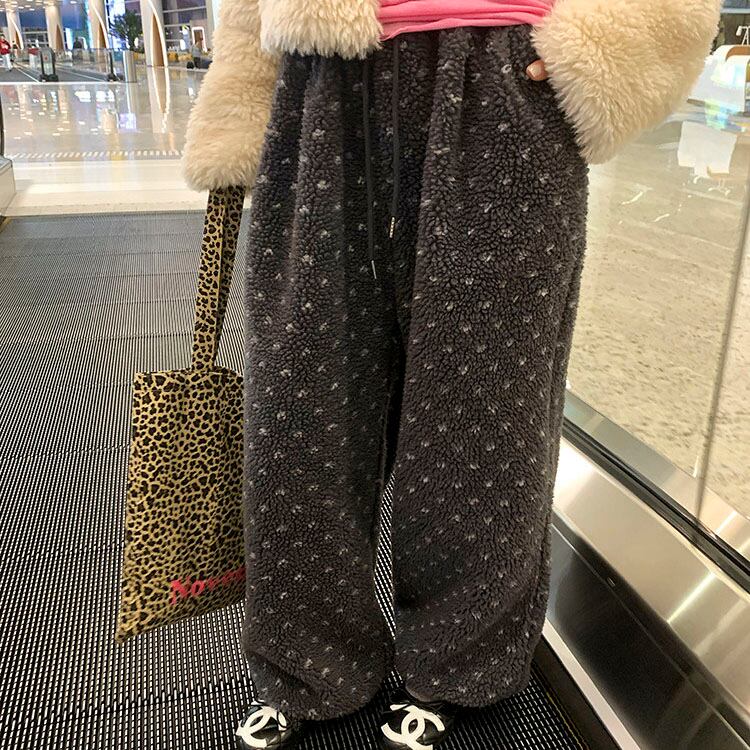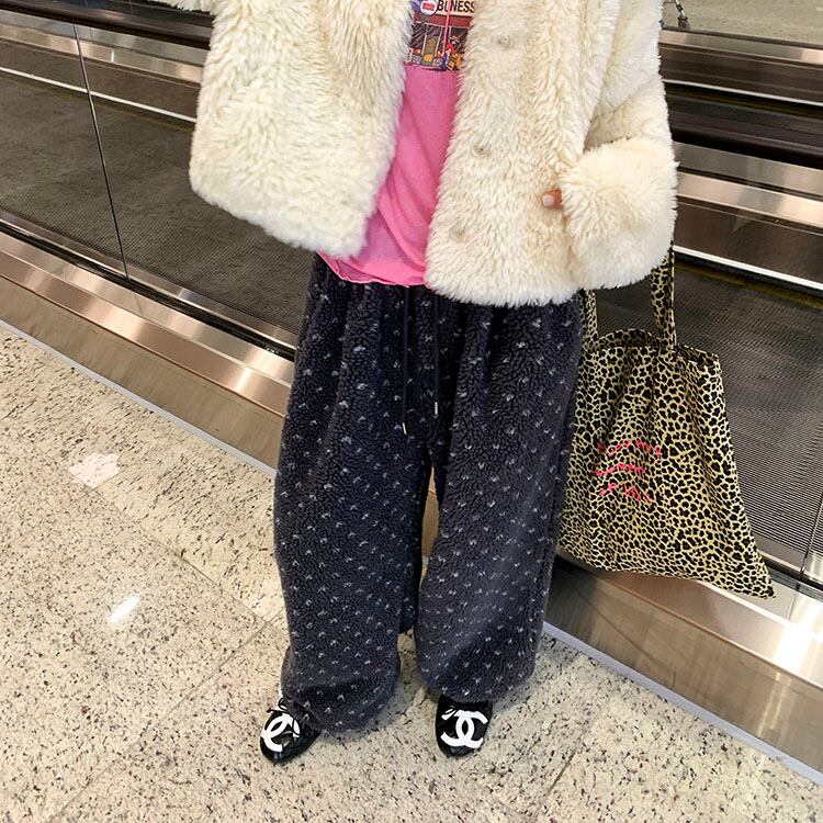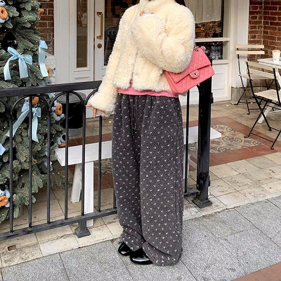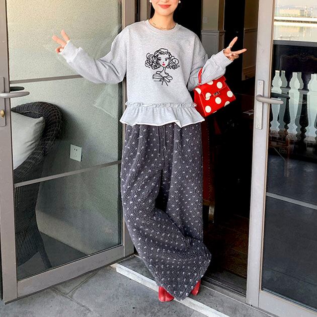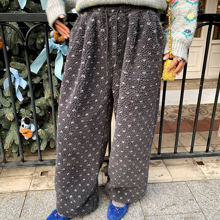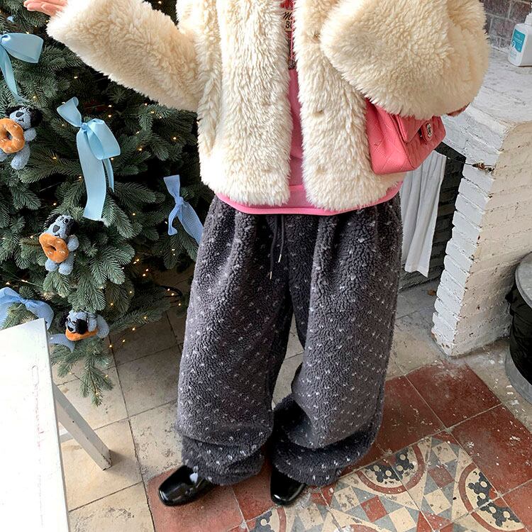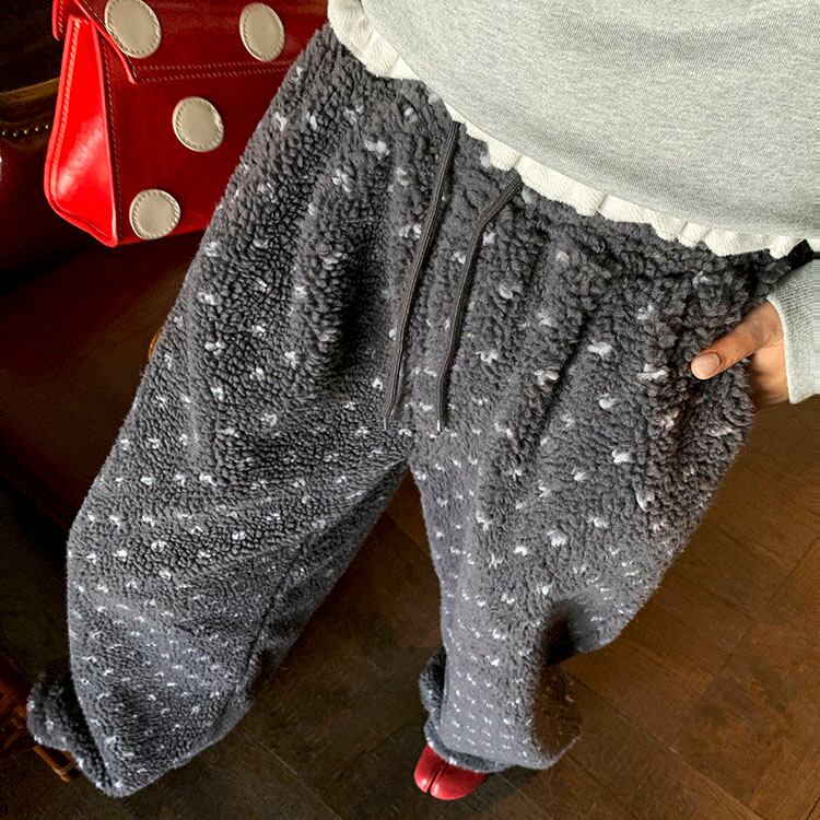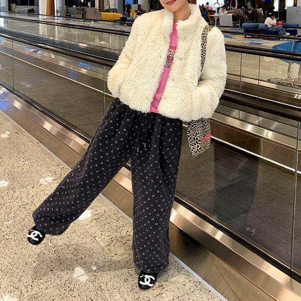 ふんわりとしたボア素材が目を惹く、やさしい存在感のイージーパンツです♡