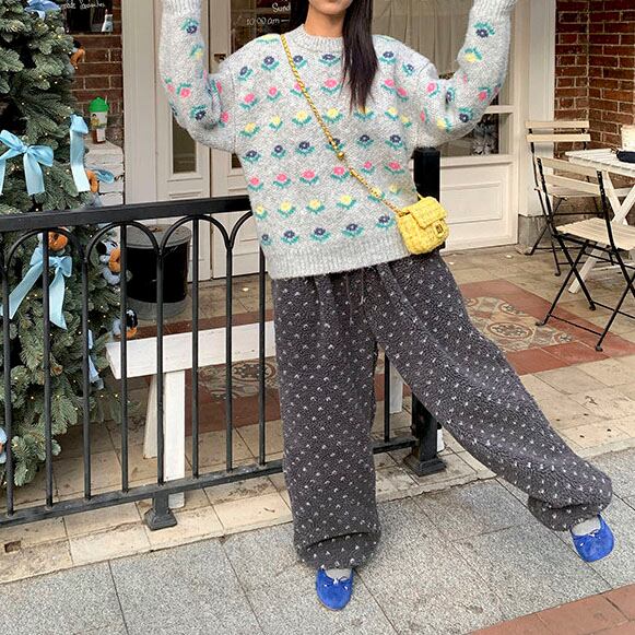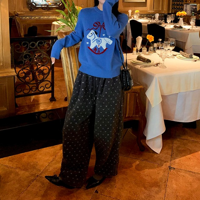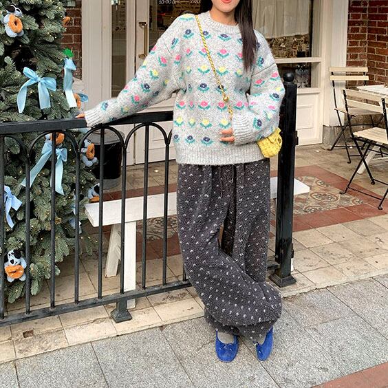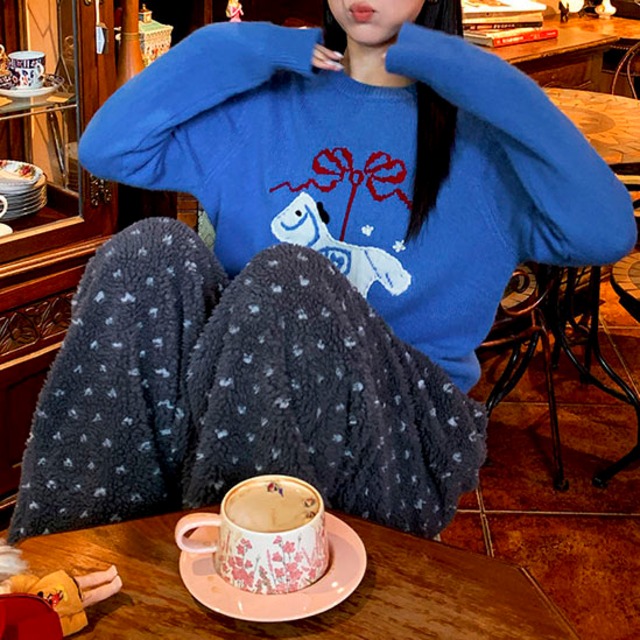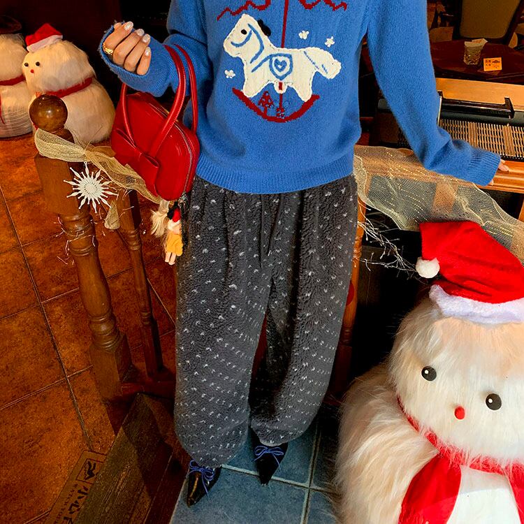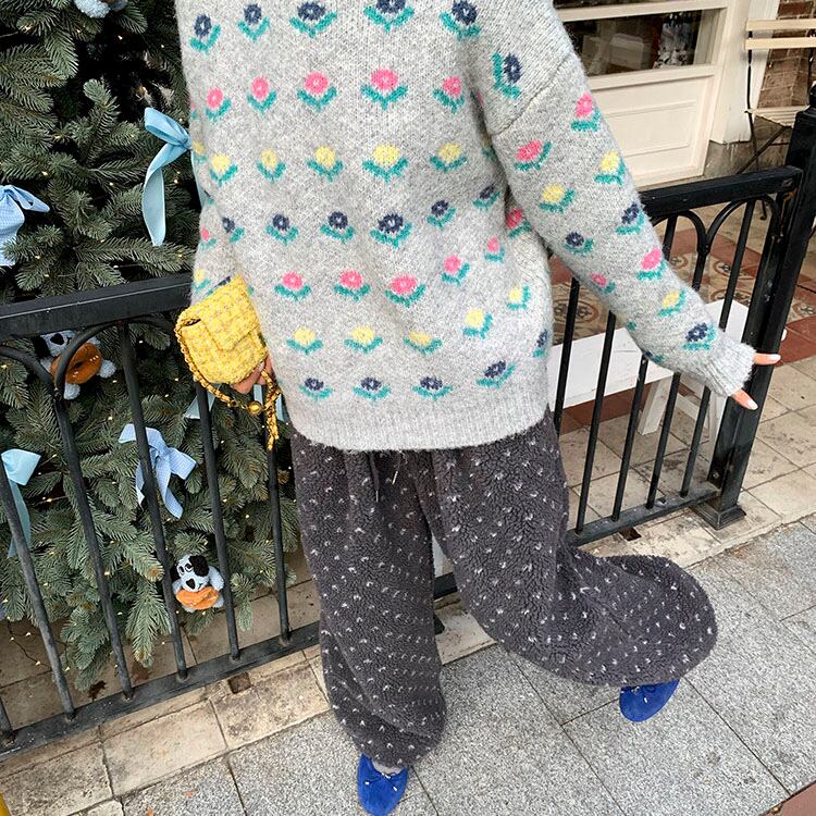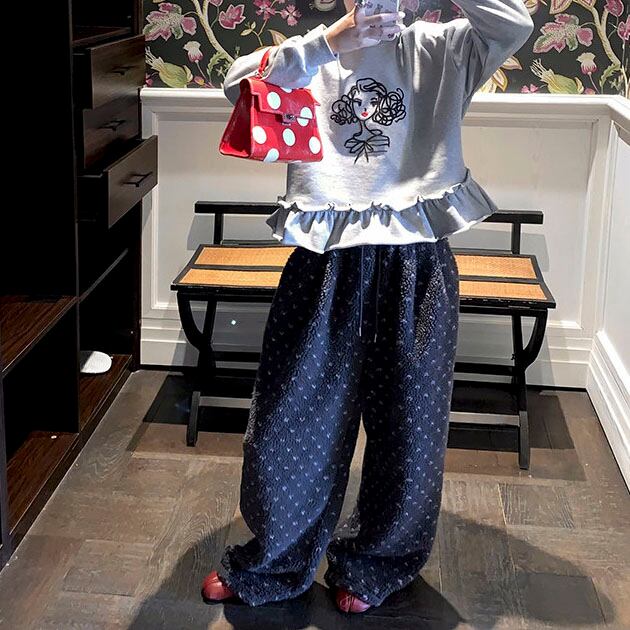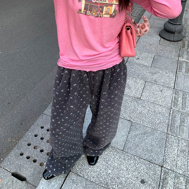 ふんわりとしたボア素材が目を惹く、やさしい存在感のイージーパンツです♡