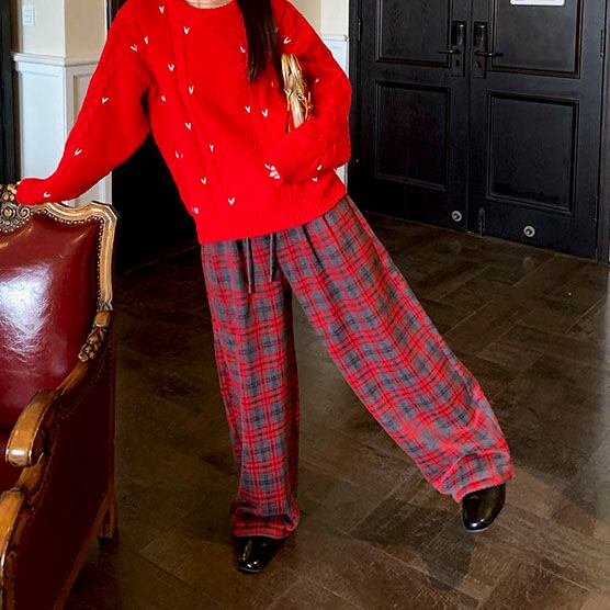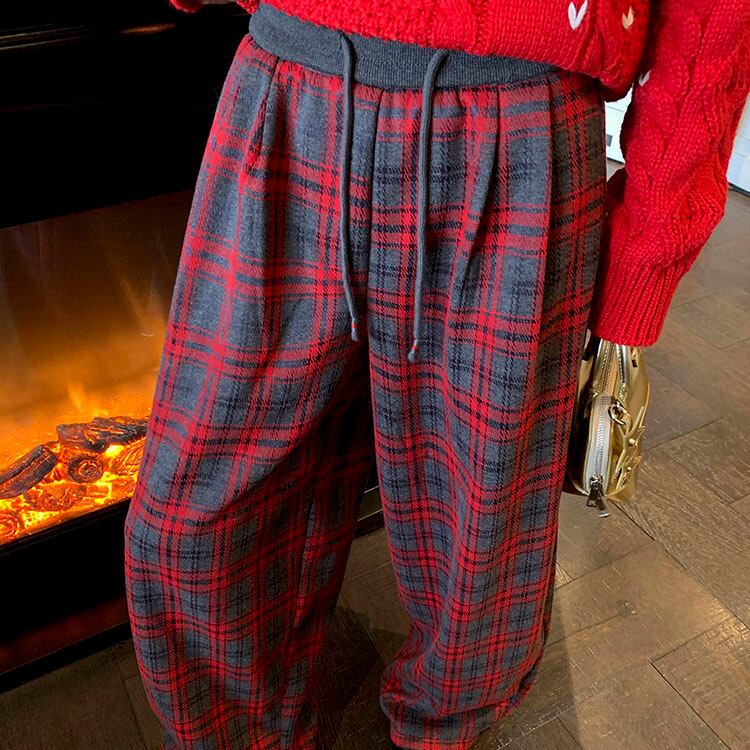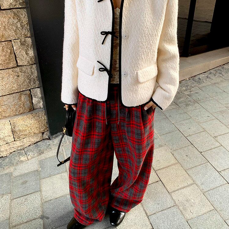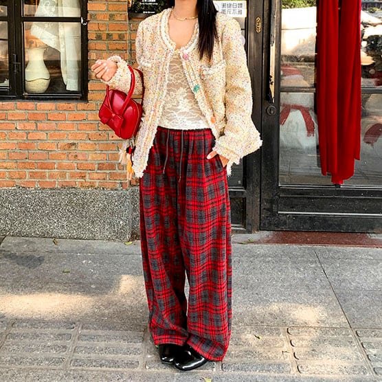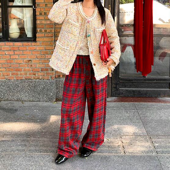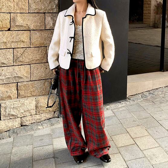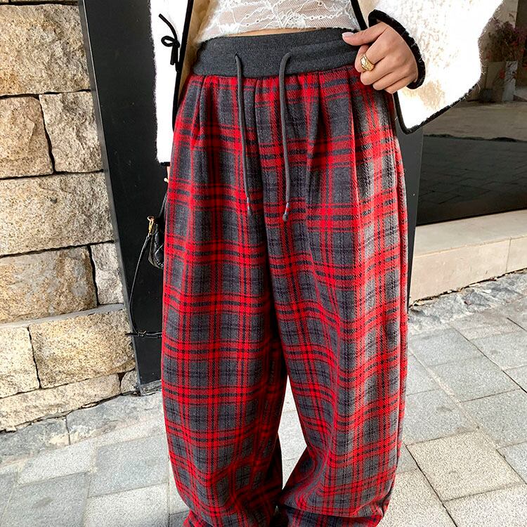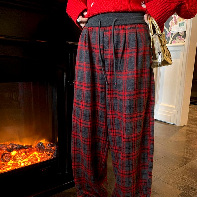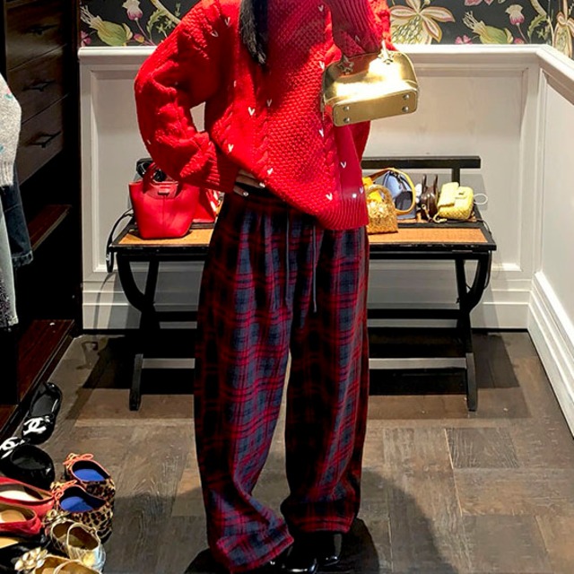 落ち着いたチェック柄がコーデに程よい存在感を添えるイージーパンツです♡
