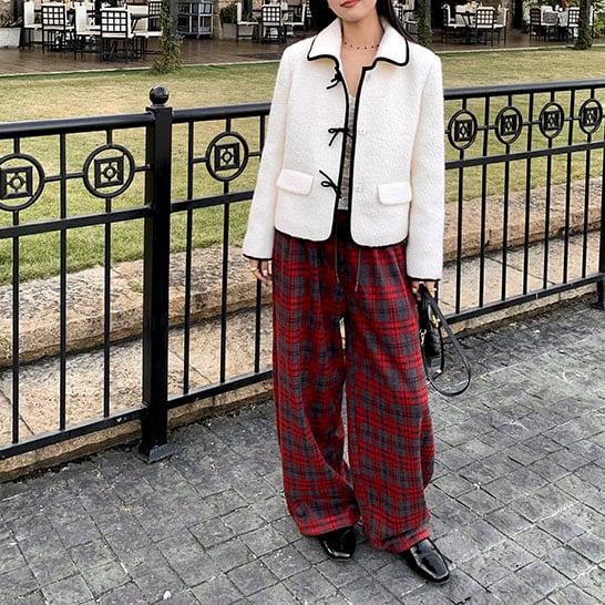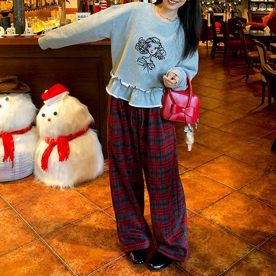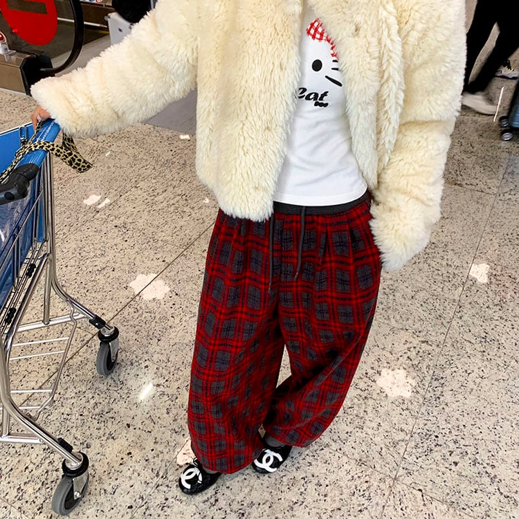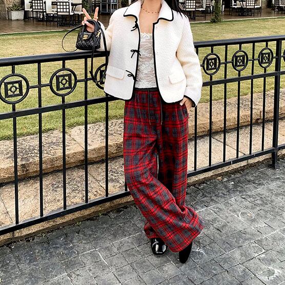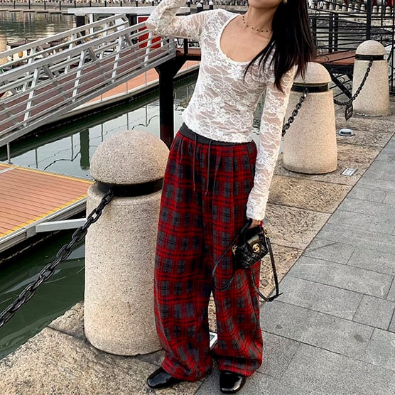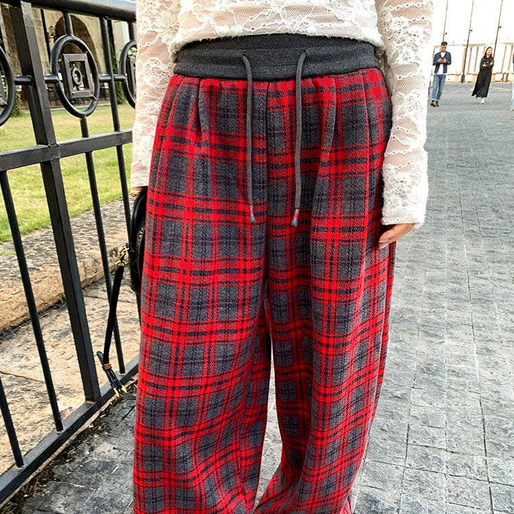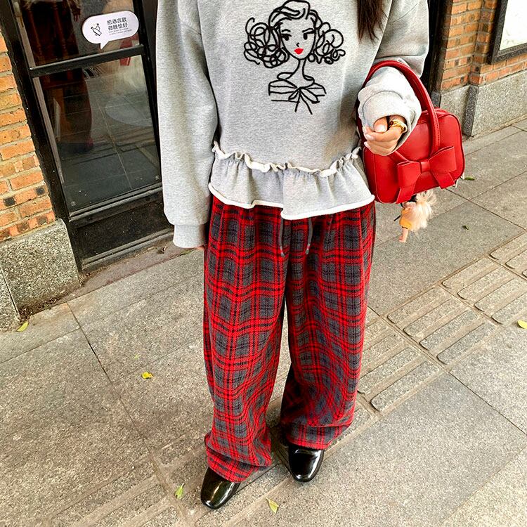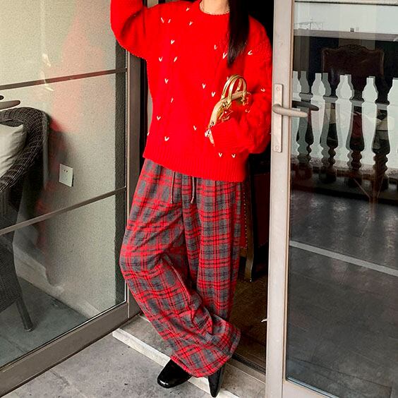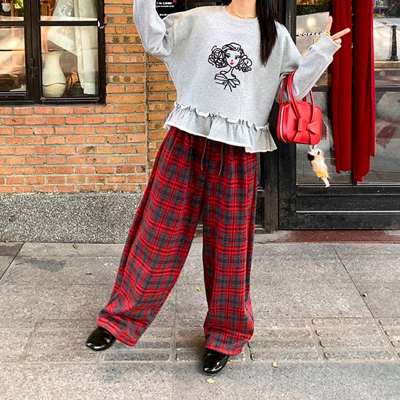 落ち着いたチェック柄がコーデに程よい存在感を添えるイージーパンツです♡