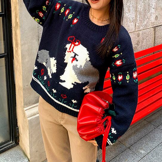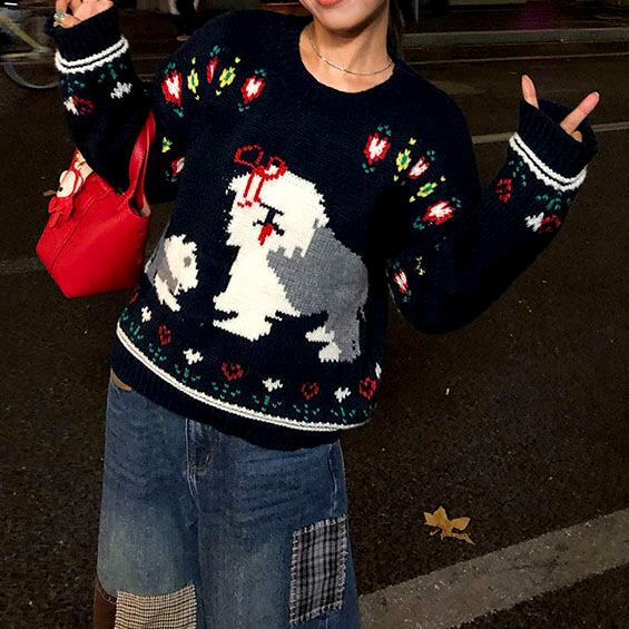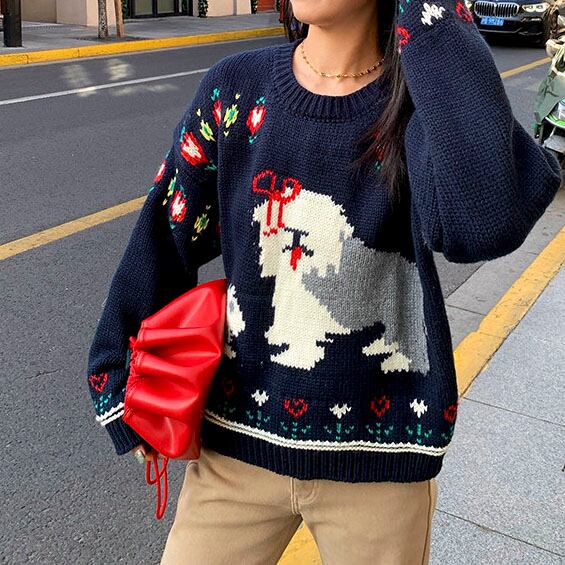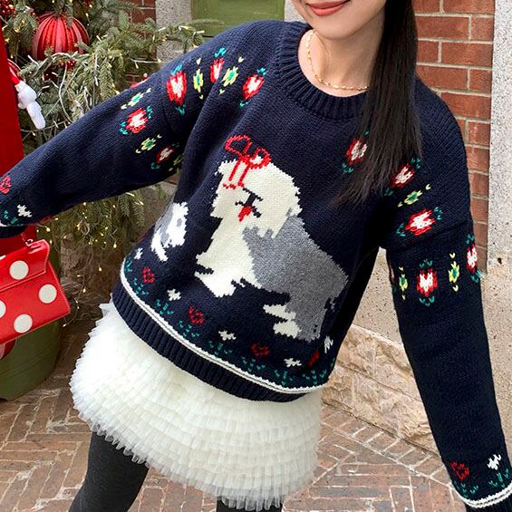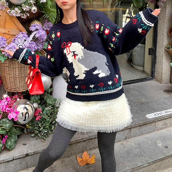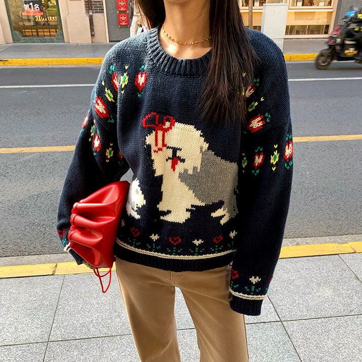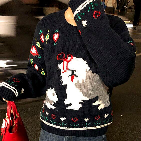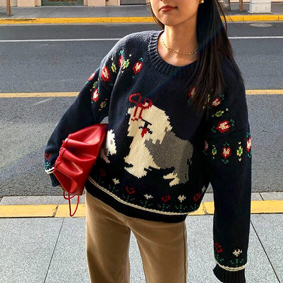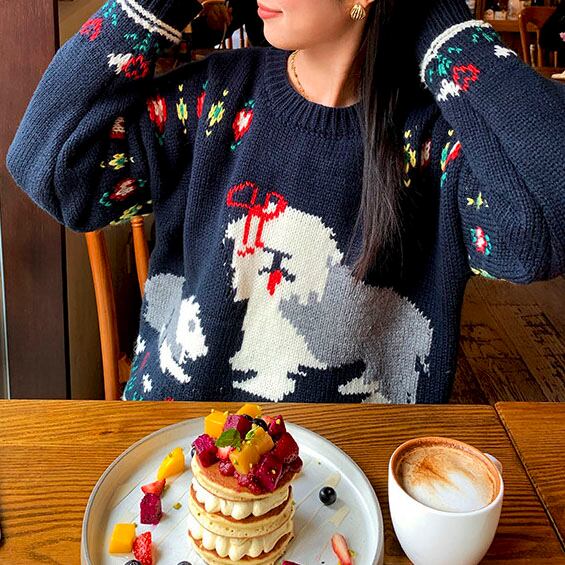 存在感のあるドッグモチーフが目を惹く、遊び心たっぷりのニットです♡