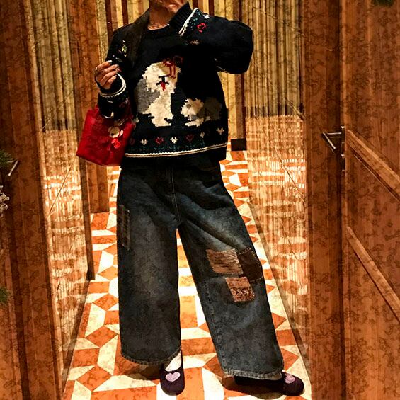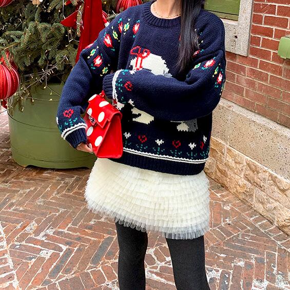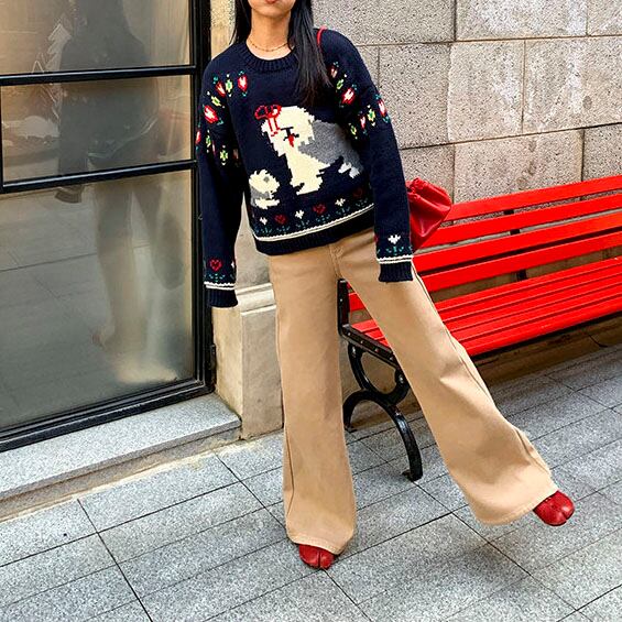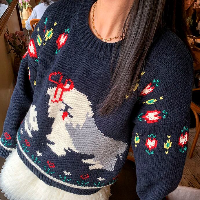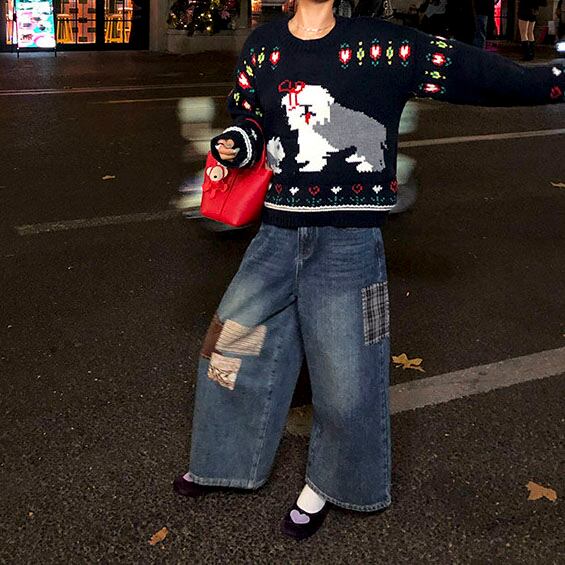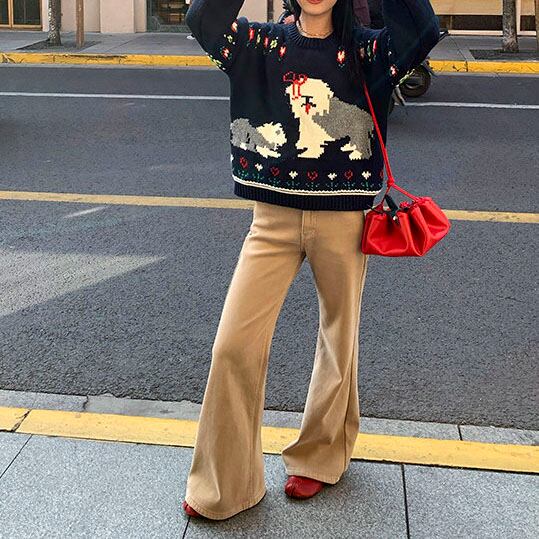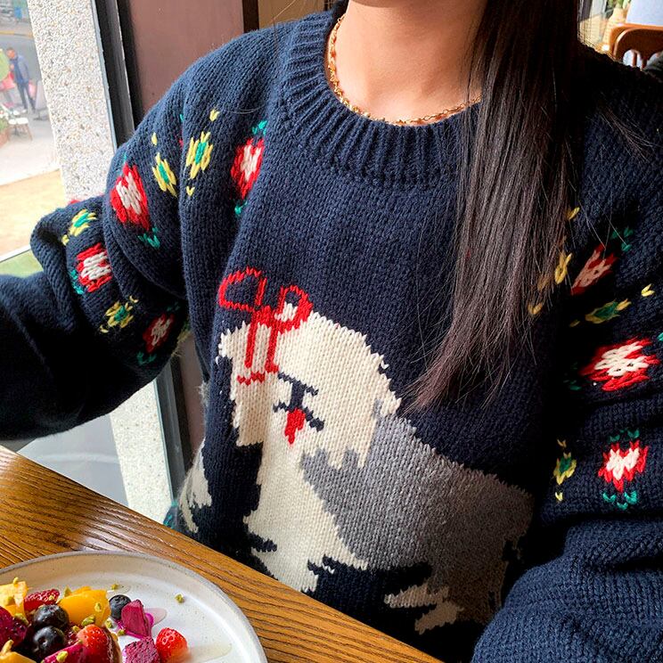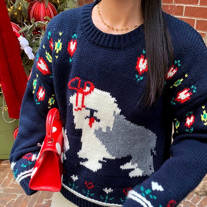 存在感のあるドッグモチーフが目を惹く、遊び心たっぷりのニットです♡