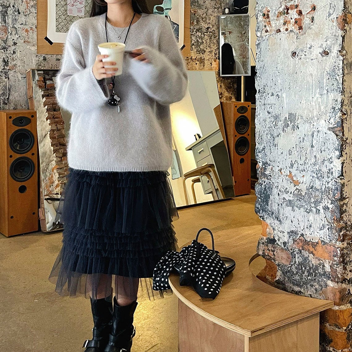 クルーネック仕様なので、レースやシャツとのレイヤードも楽しめます◎