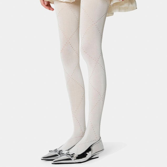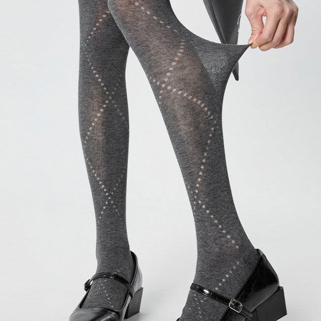 さりげないドットライン柄が、脚元に上品なニュアンスを添えるタイツ♡