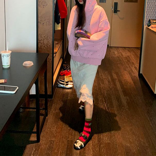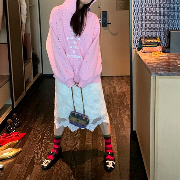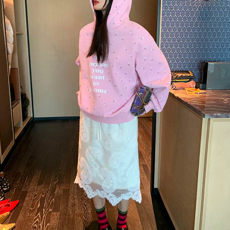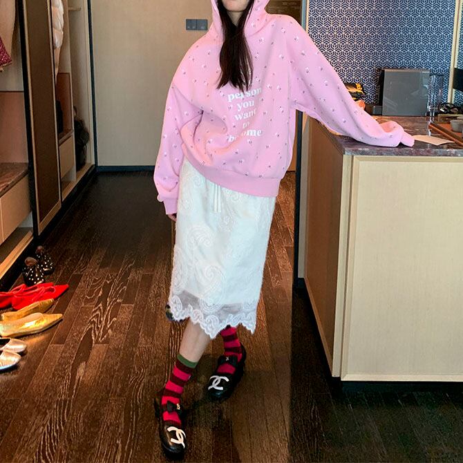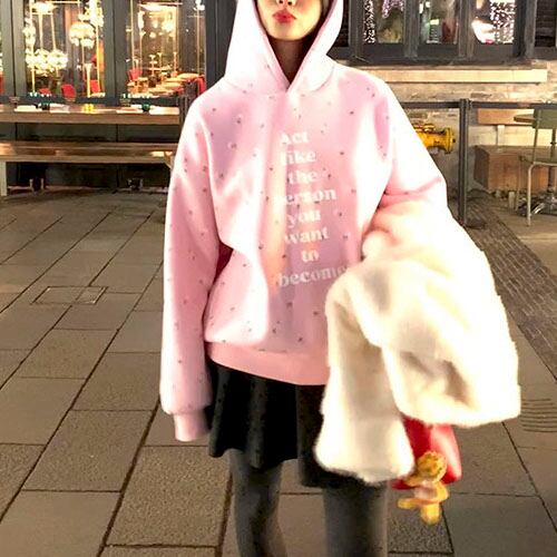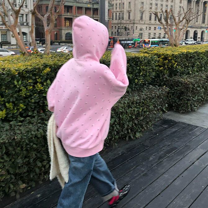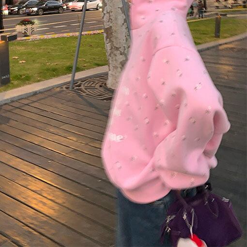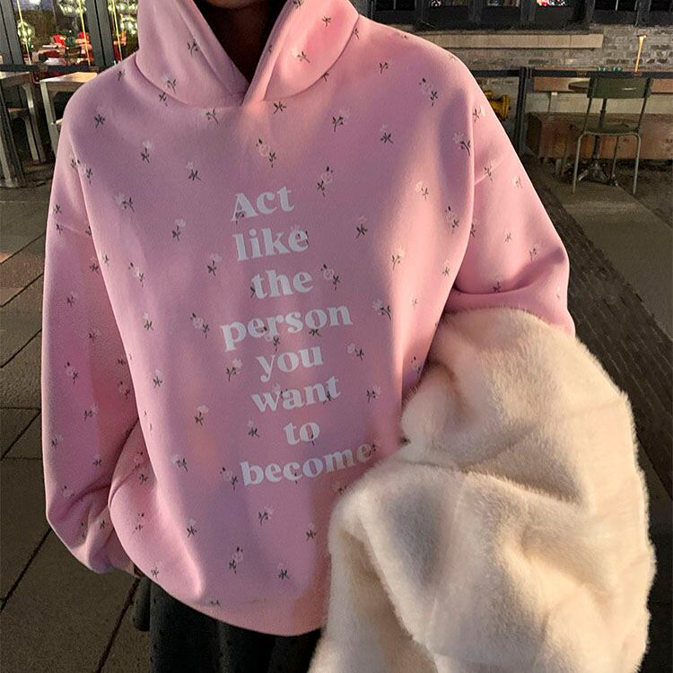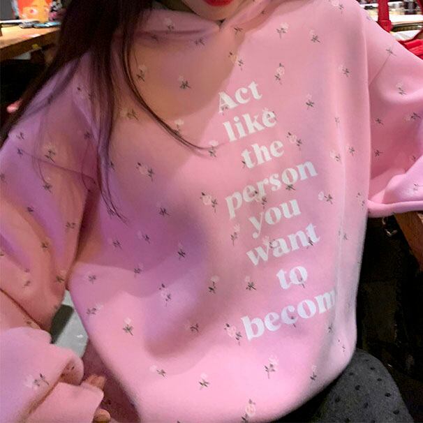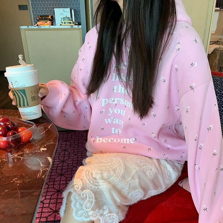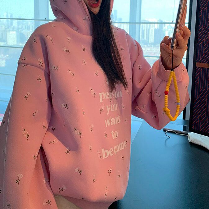 やさしいピンクに小花柄を散りばめた、気分まで明るくなるフーディです♡
