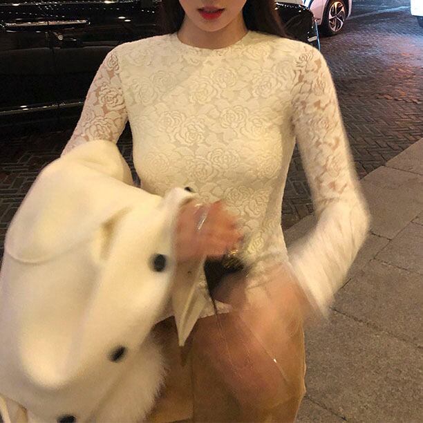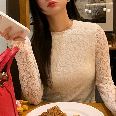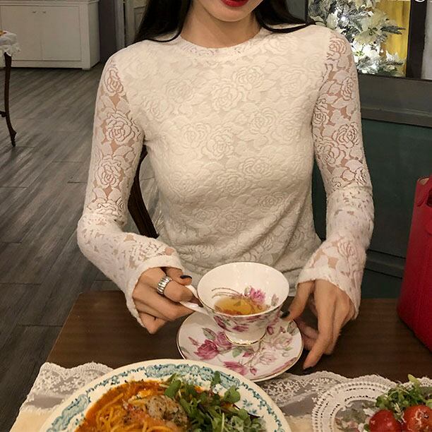Floral lace long sleeve top 2litr06114