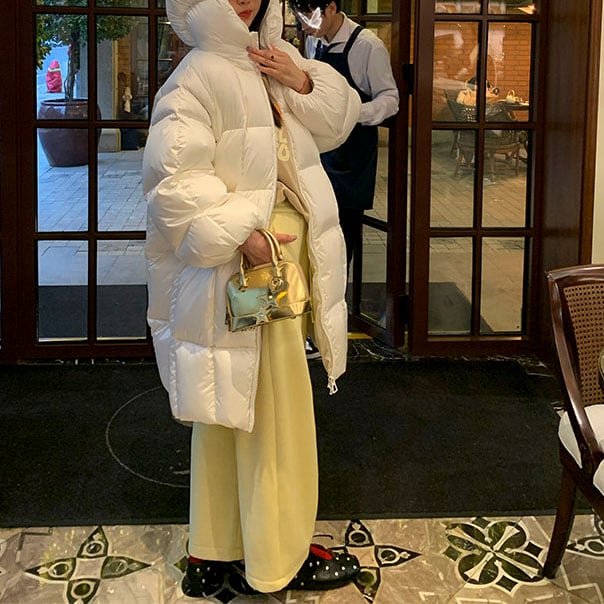ストンと落ちるワイドシルエットで、体のラインを拾いにくいのも◎