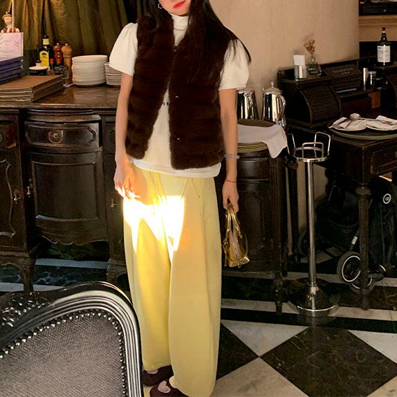 淡いイエローカラーがコーデに優しい明るさをプラスしてくれます