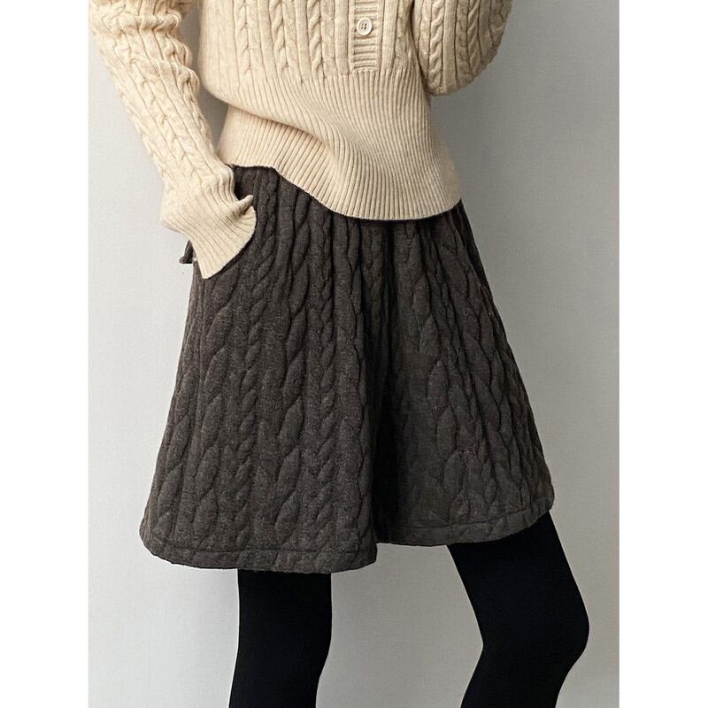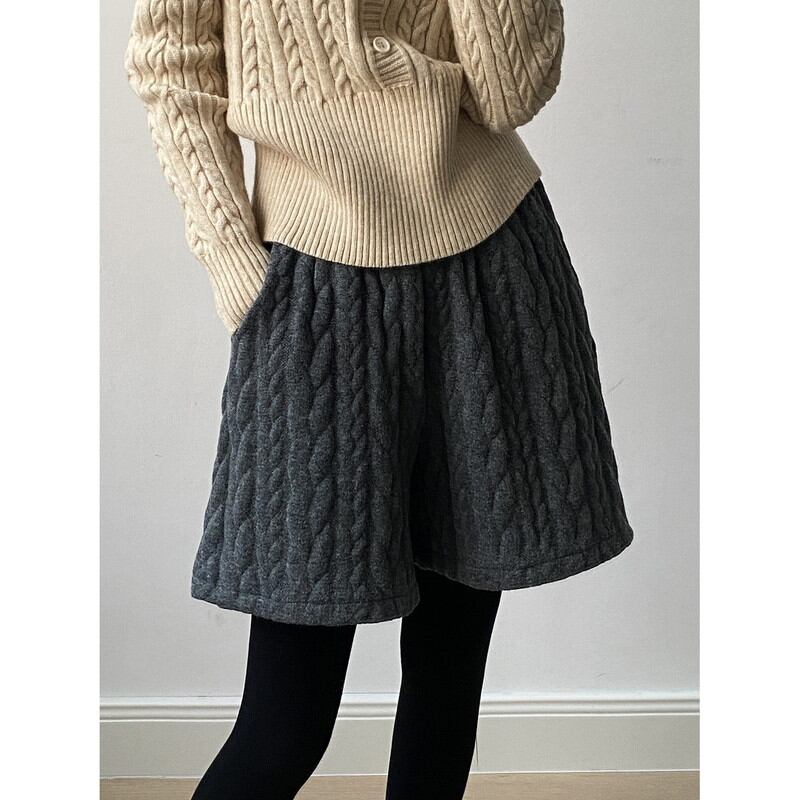 embossed knit wide short-pants 2litr06121