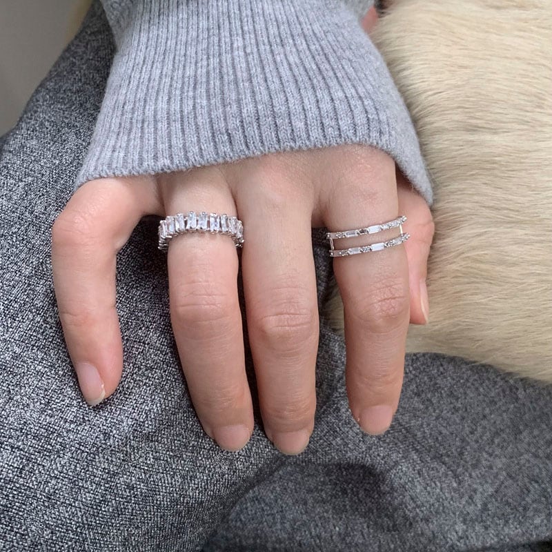 Square Stone Double Line Ring Set 2litr06126