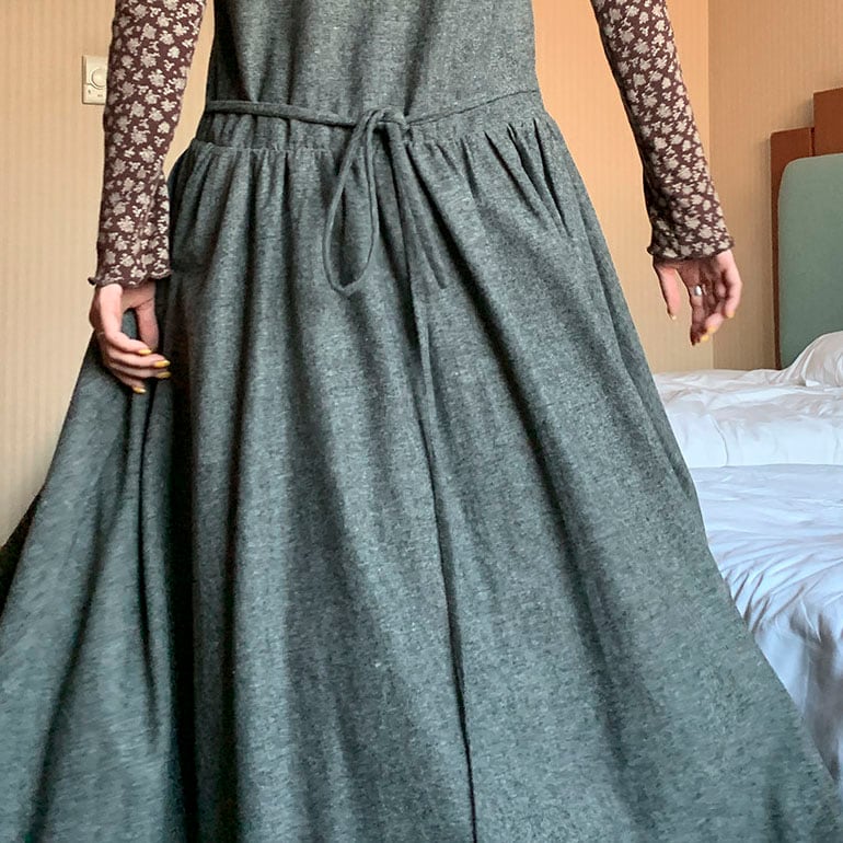 ウエスト切り替えのギャザーデザインが、動くたびにやわらかな表情を演出します。