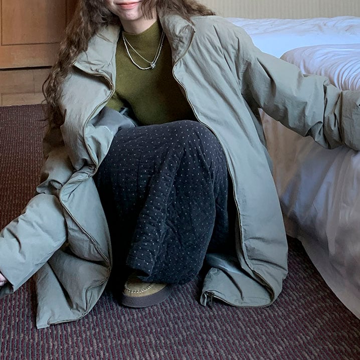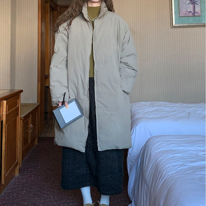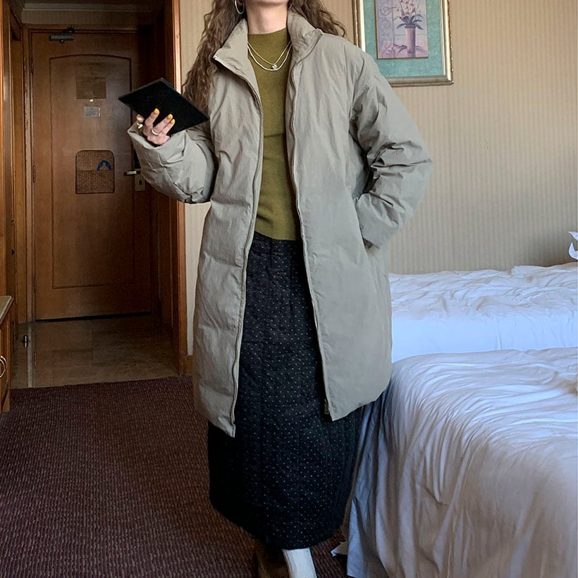 広がりすぎないロングシルエットで、落ち着いた大人カジュアルに◎