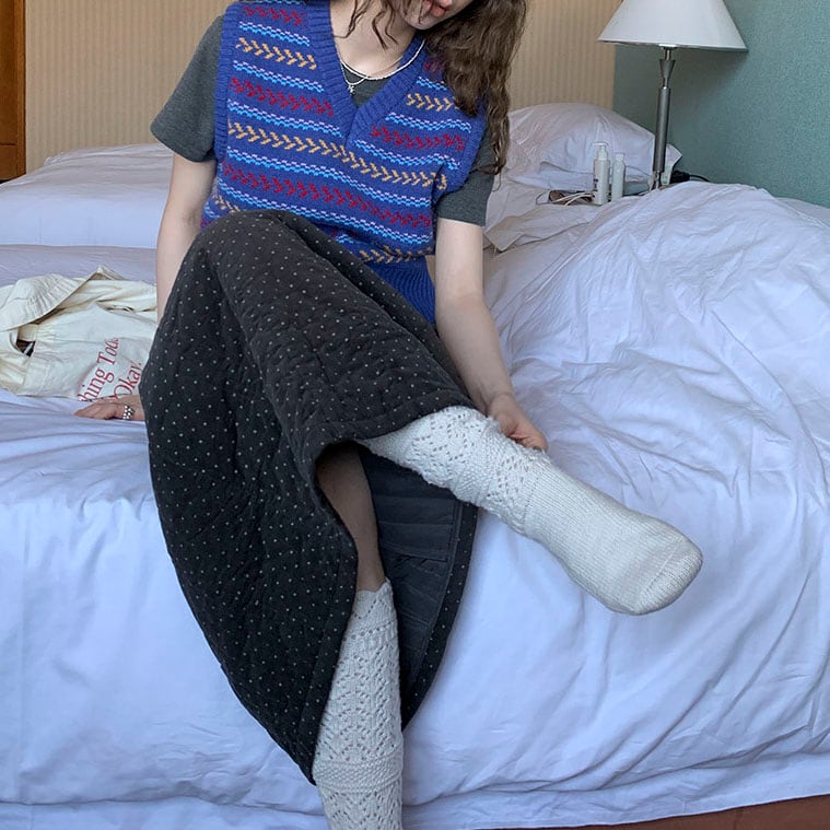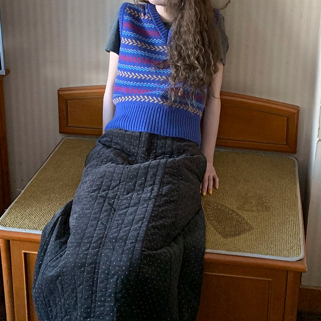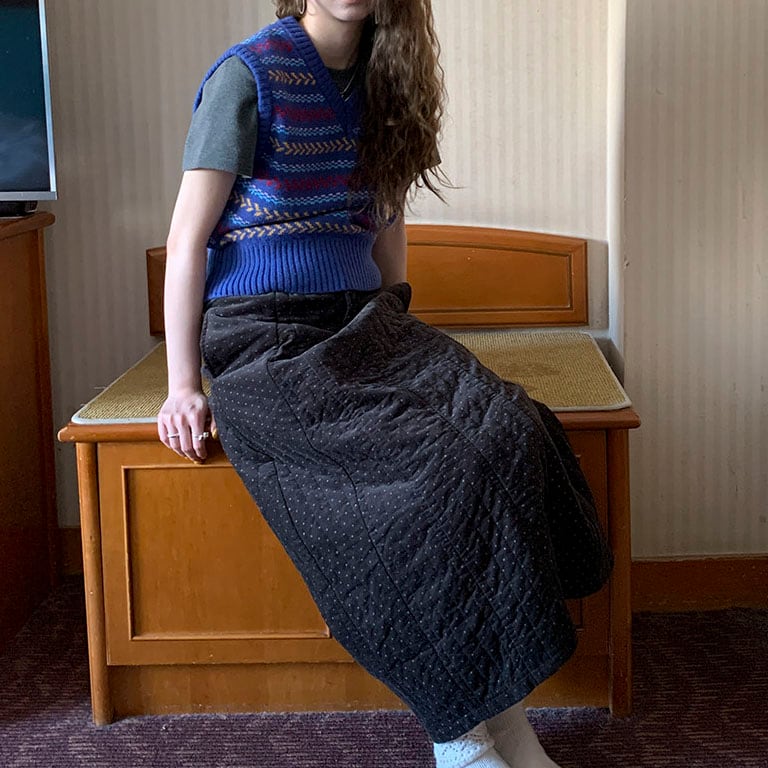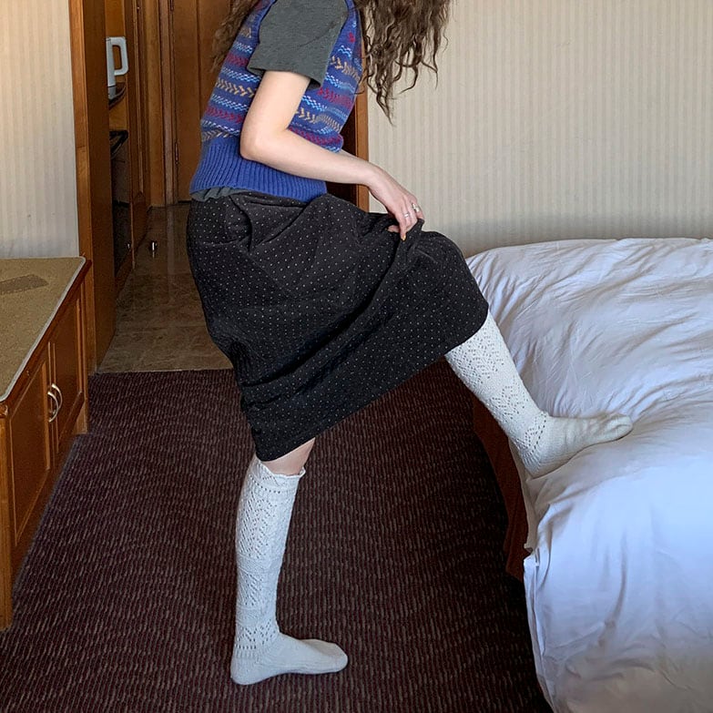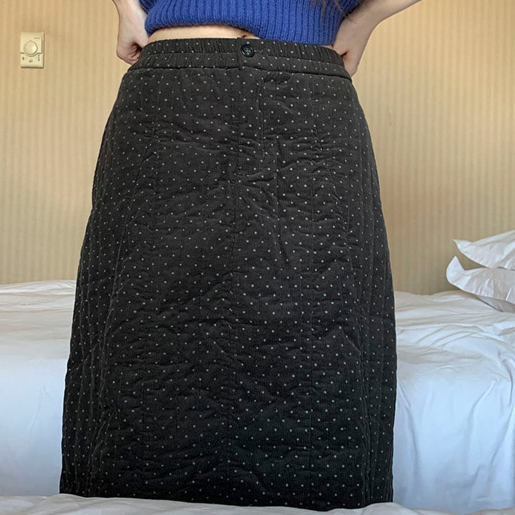 コーデュロイ素材に、さりげないドット柄が映える一枚♡
