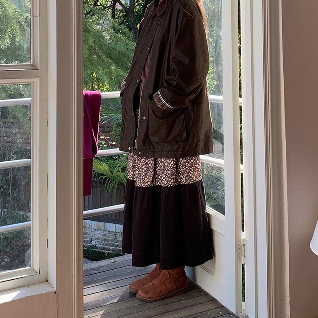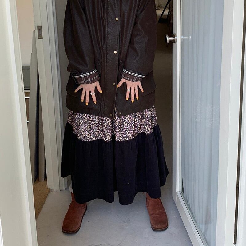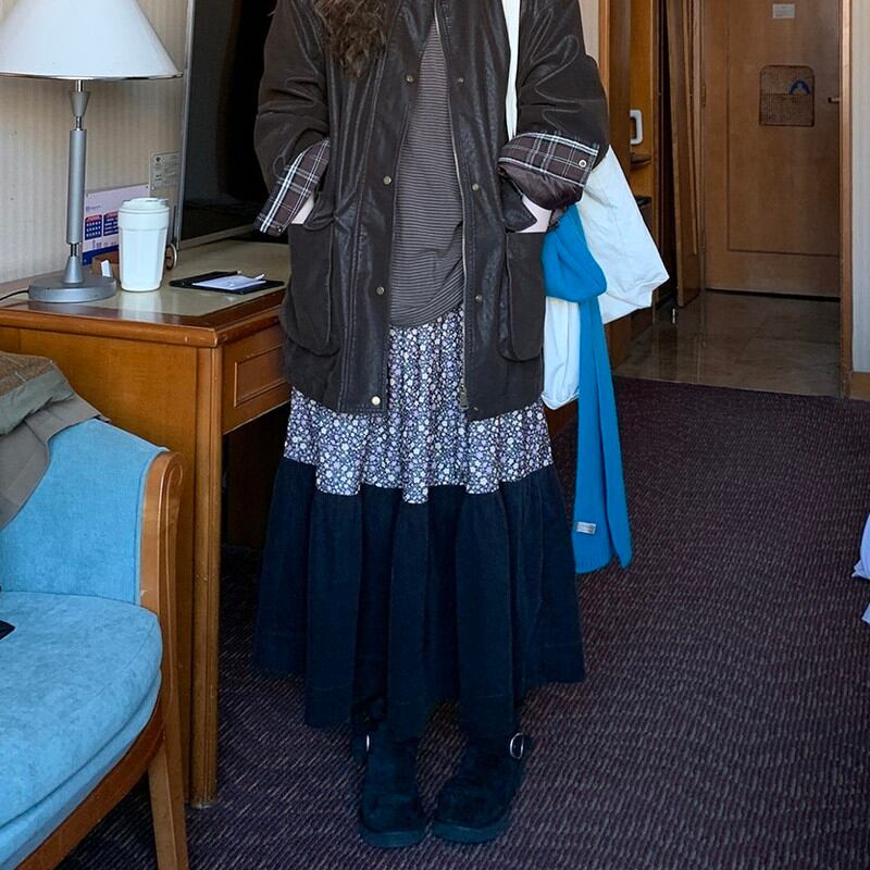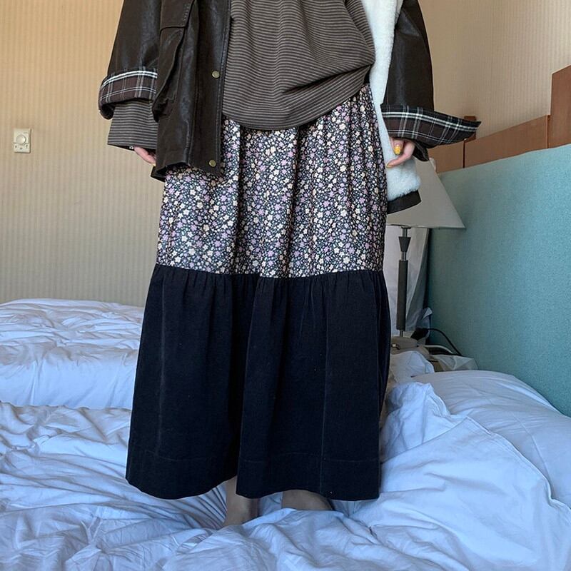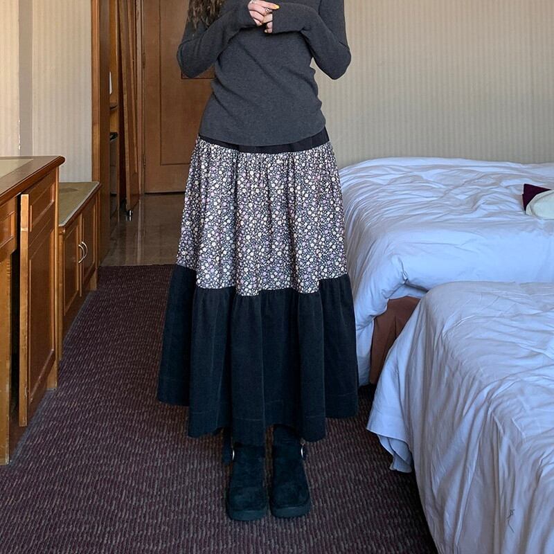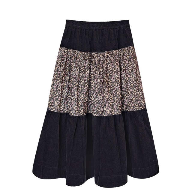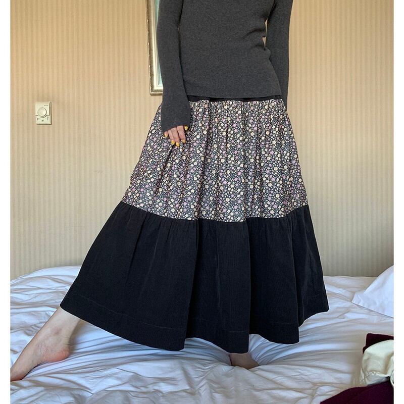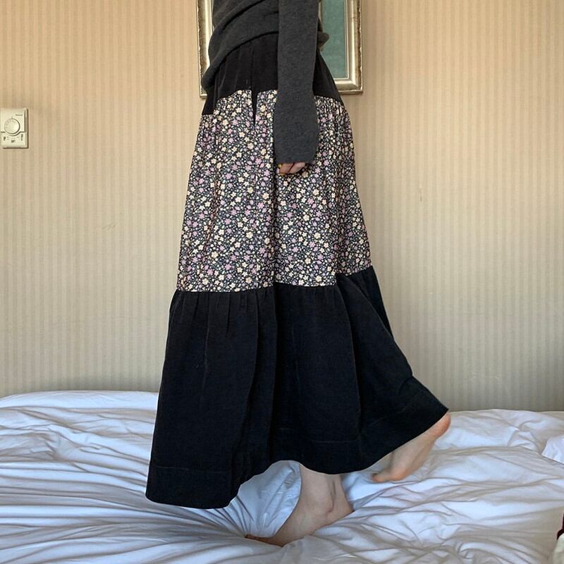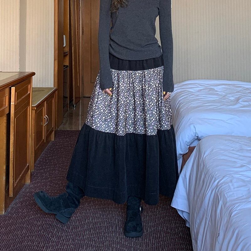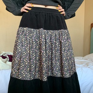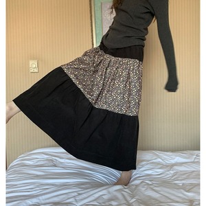 patchwork floral tiered flare long-skirt 2litr06157