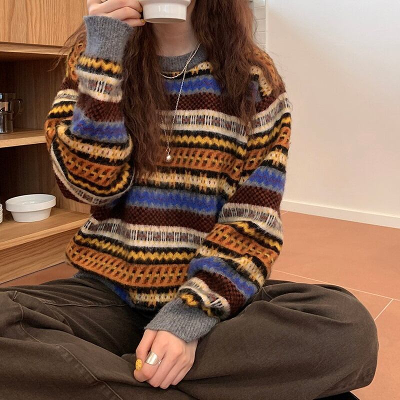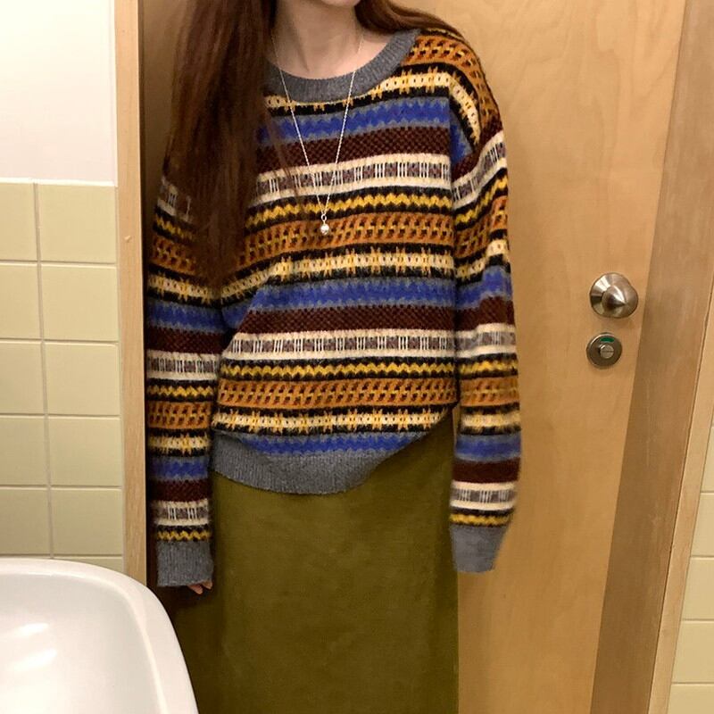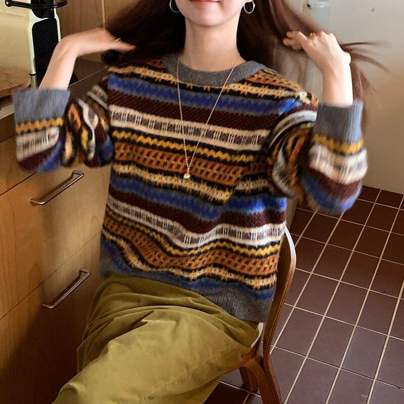 round-neck loose retro knit 2litr06166