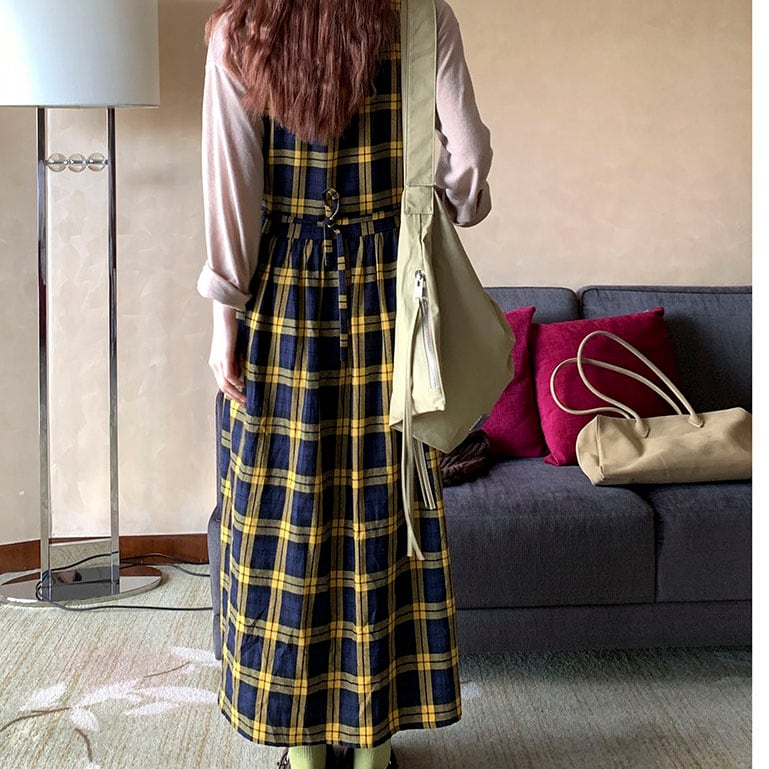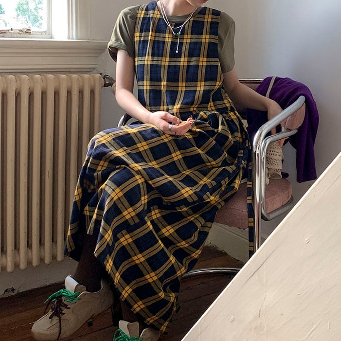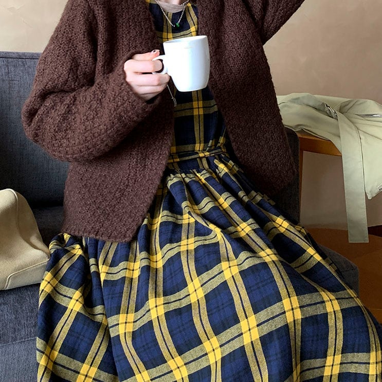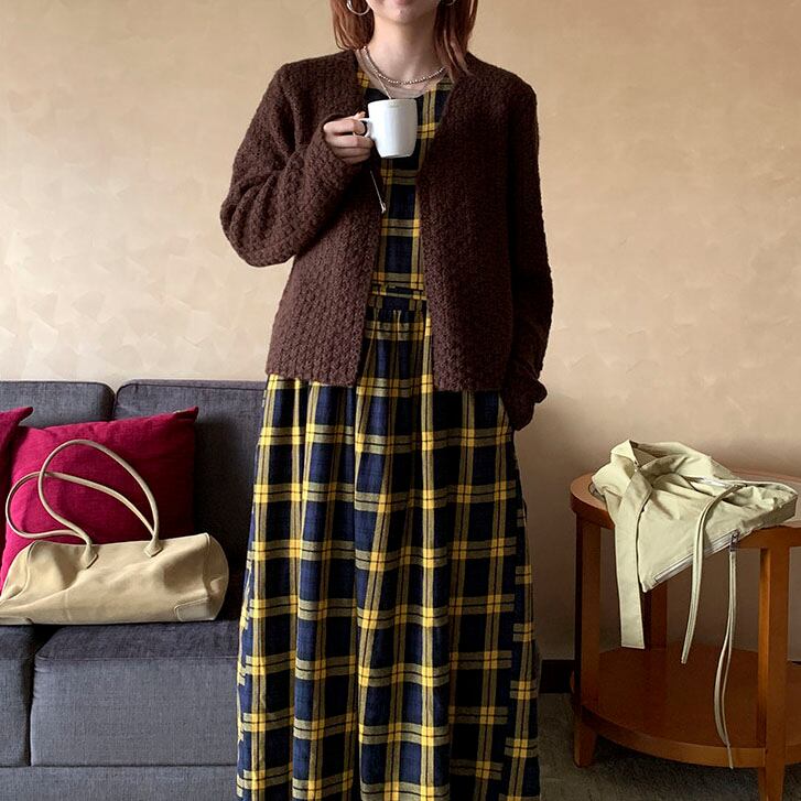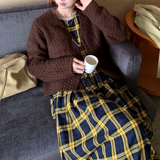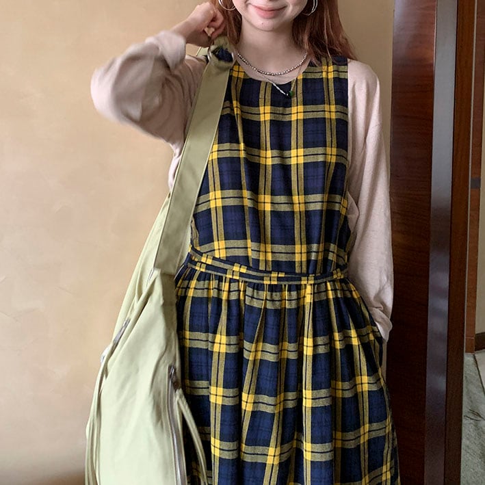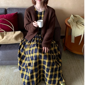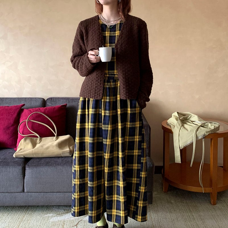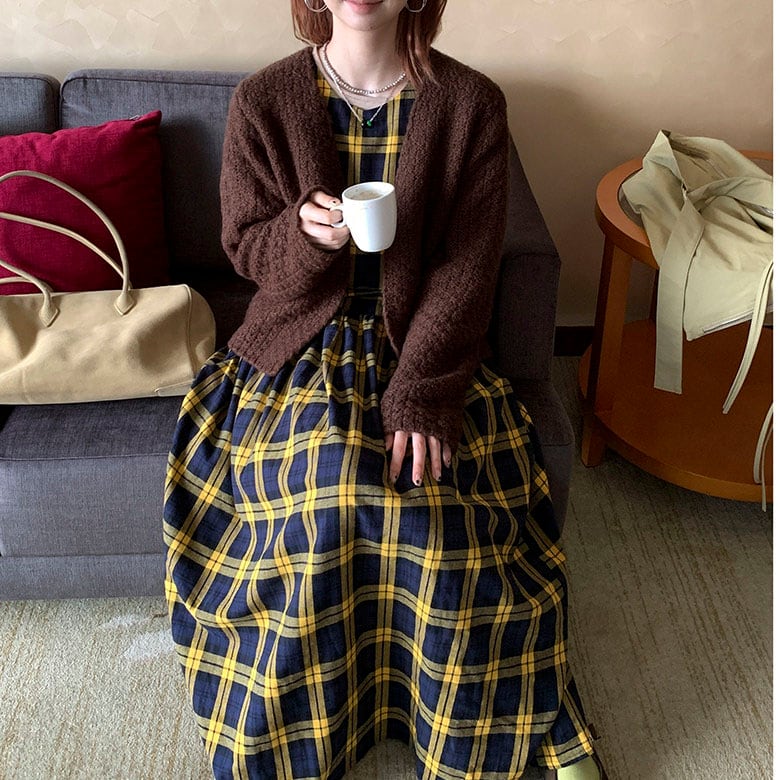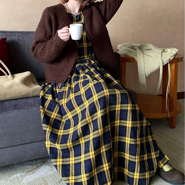 落ち着いたチェック柄が印象的な、クラシカルムードのワンピース♡