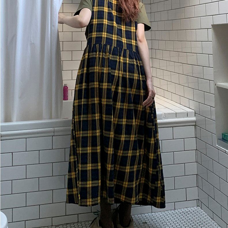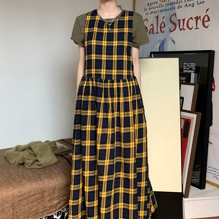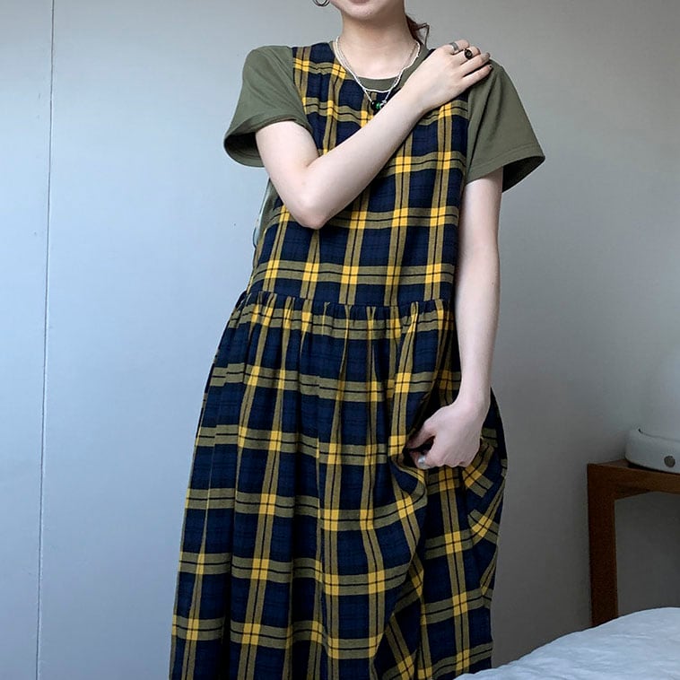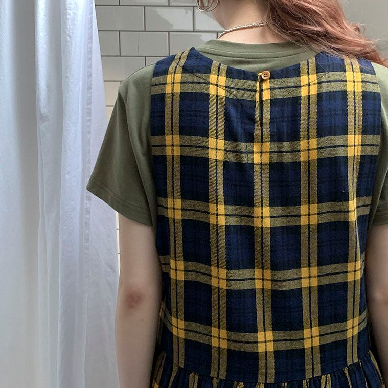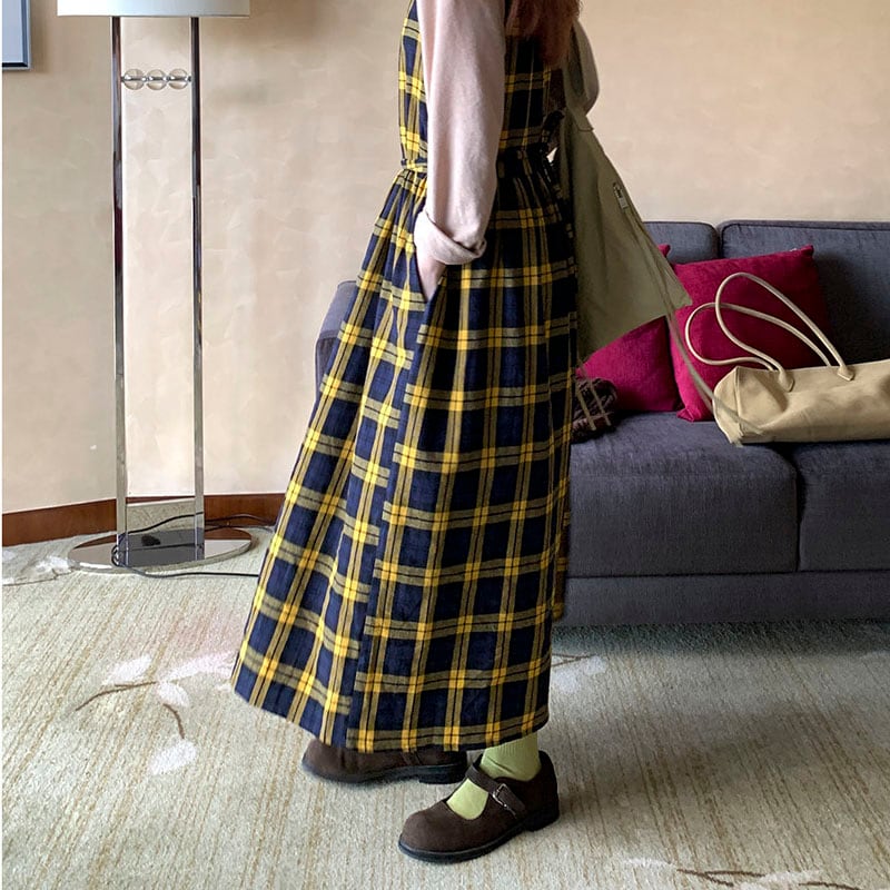 Check gathered jumper skirt 2litr06131