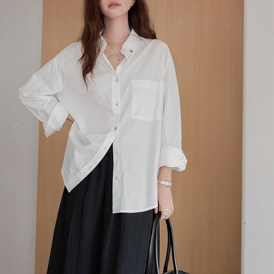 やわらかな色合いが魅力の、着回ししやすいベーシックシャツ♡