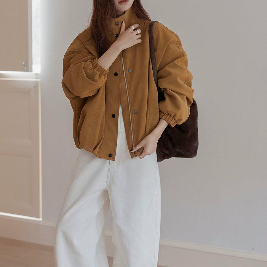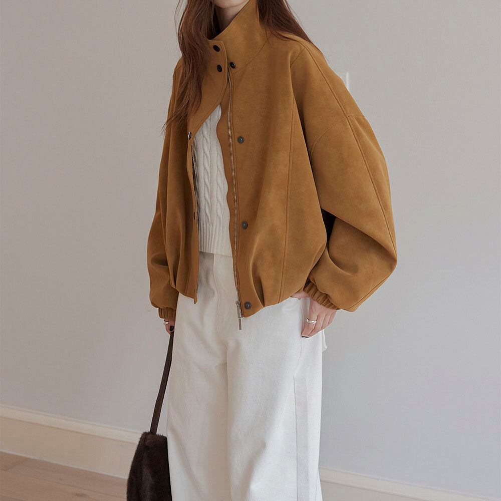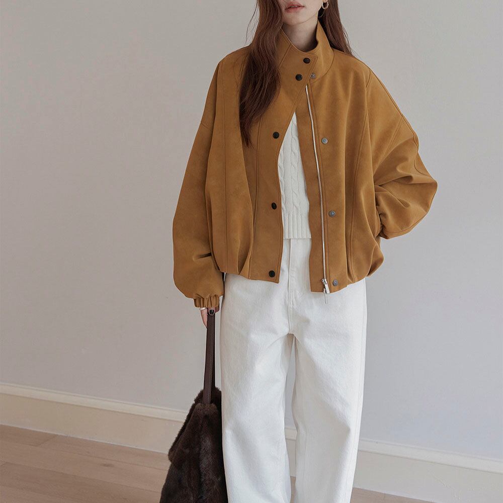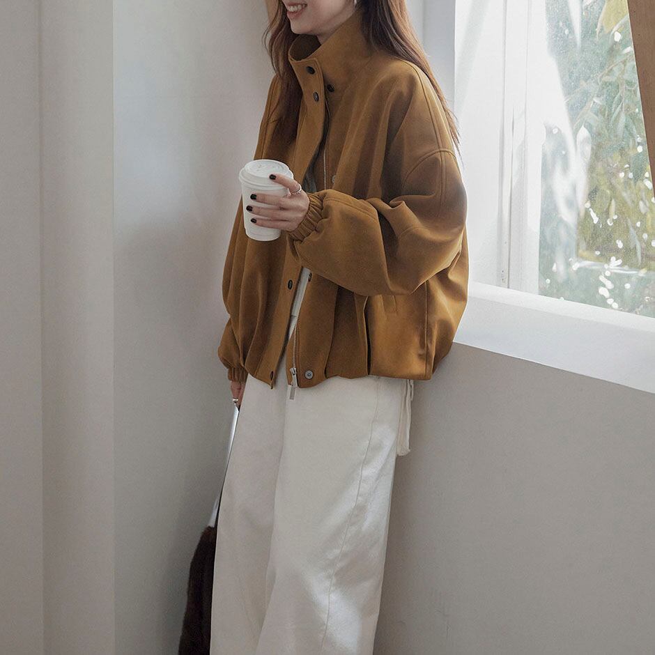 スタンドカラー仕様で首元をやさしく包み、季節の変わり目にも活躍します。
