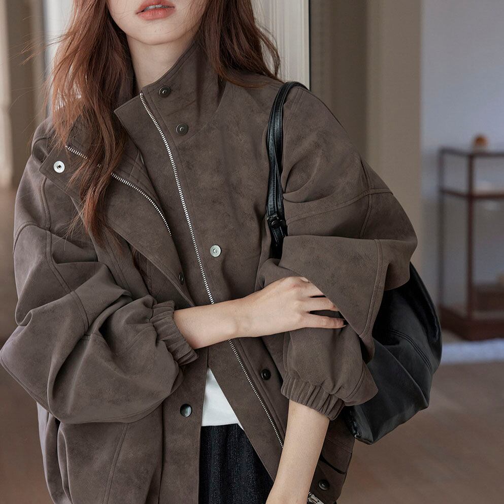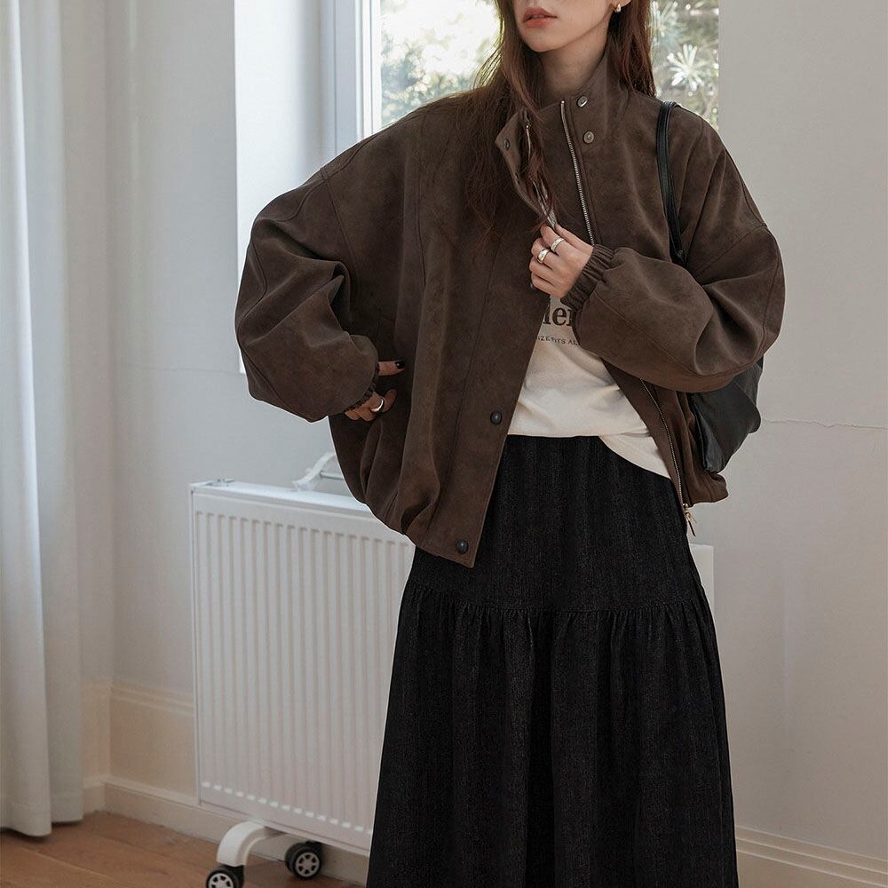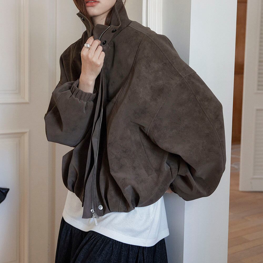スタンドカラー仕様で首元をやさしく包み、季節の変わり目にも活躍します。