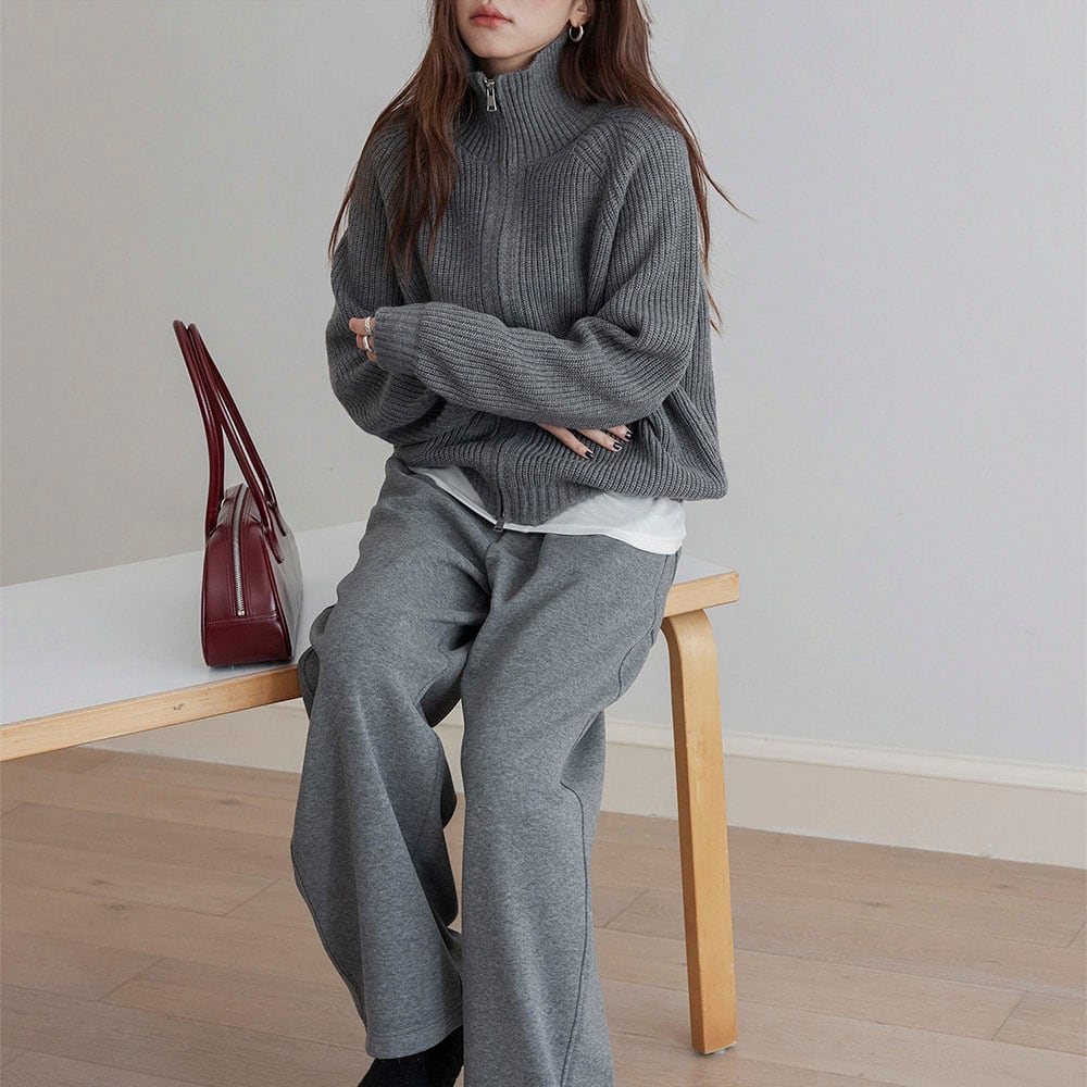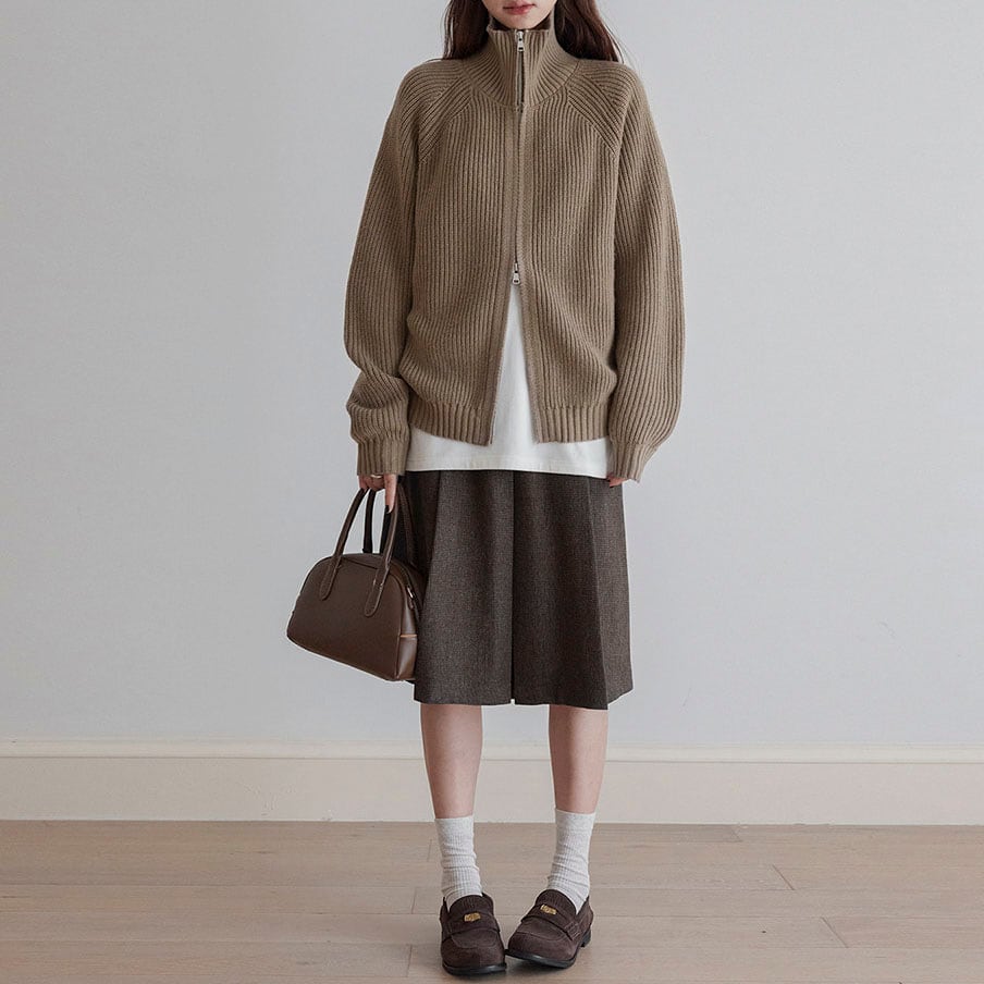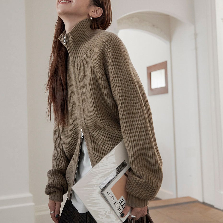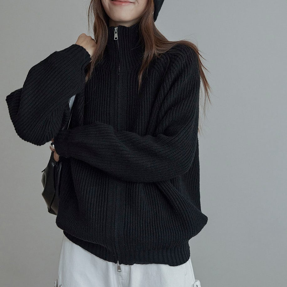 Zip rib knit cardigan 2litr06134