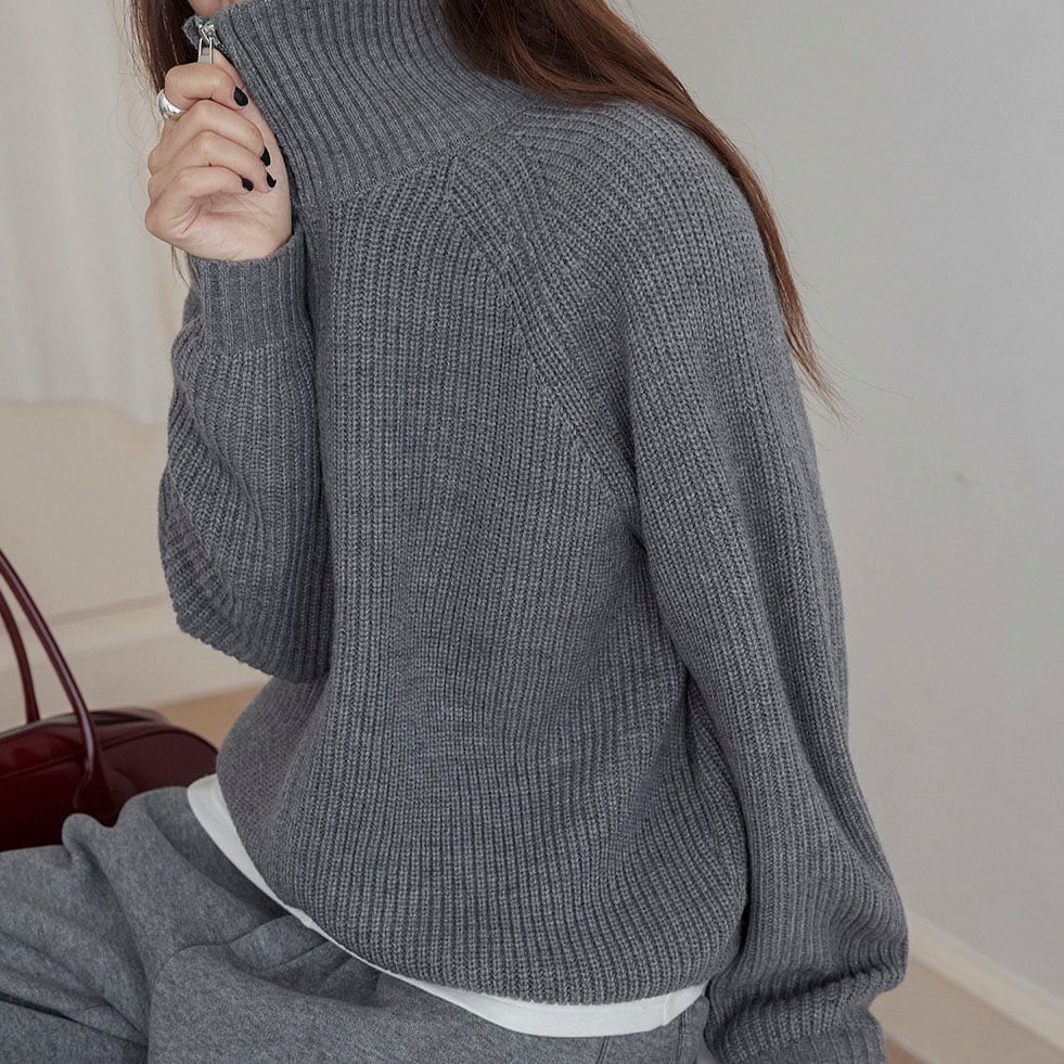ジップ仕様で、首元の印象をさりげなく調整できます!