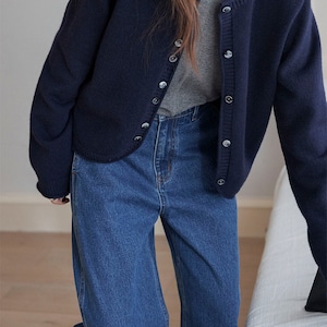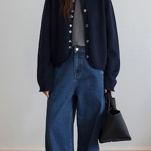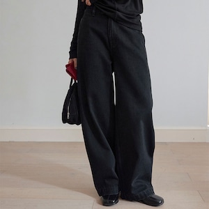 落ち感のあるデニム素材で、カジュアルすぎず大人っぽい印象です!