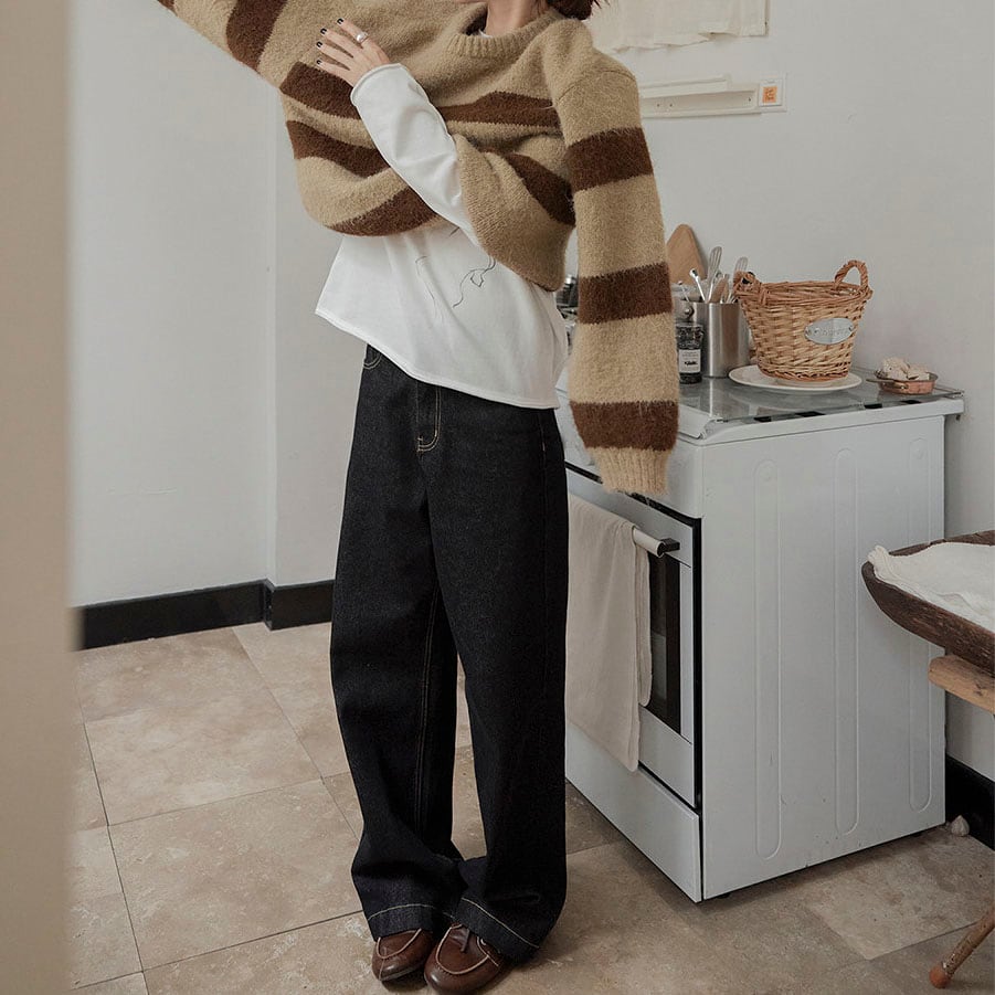 程よいワイド感で脚のラインをきれいに見せてくれるデニムパンツです。
