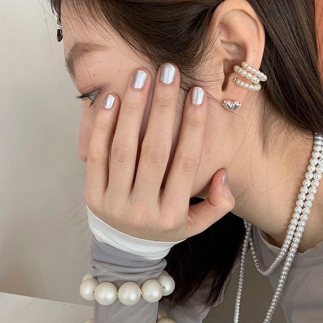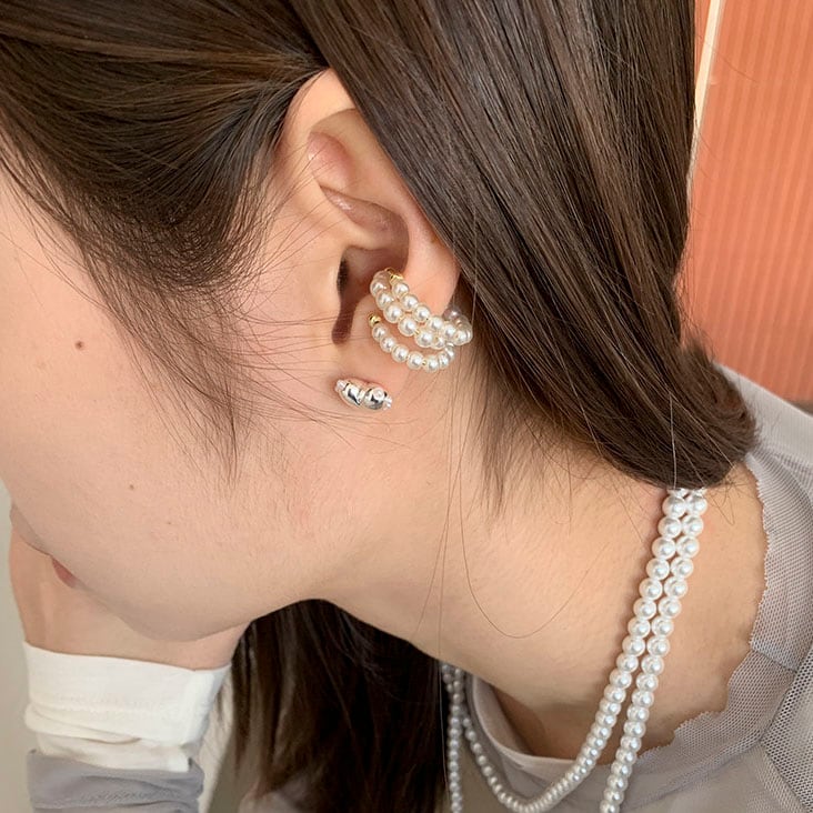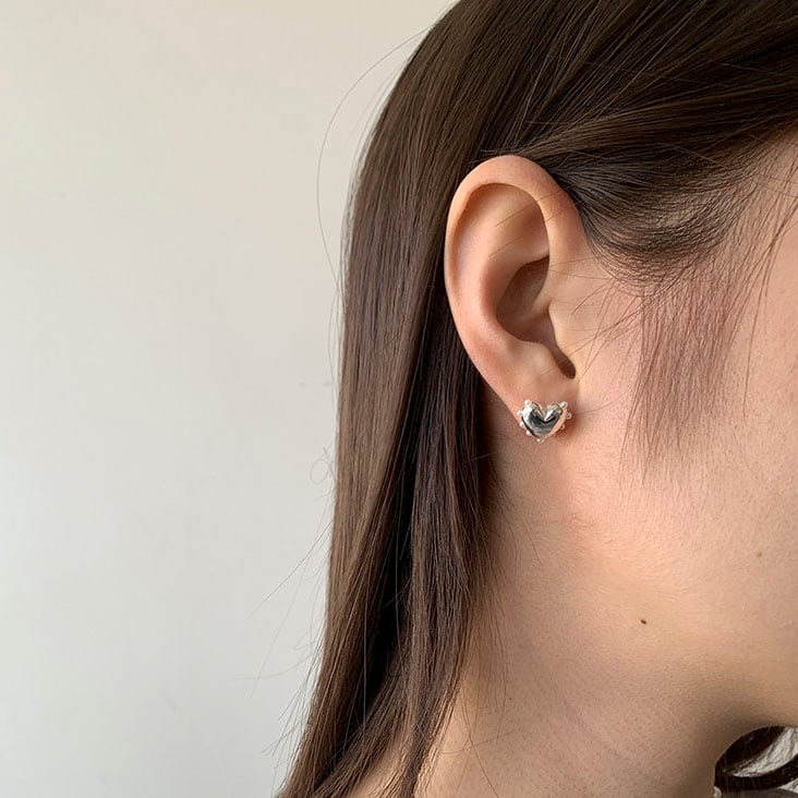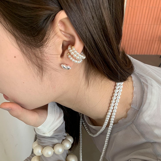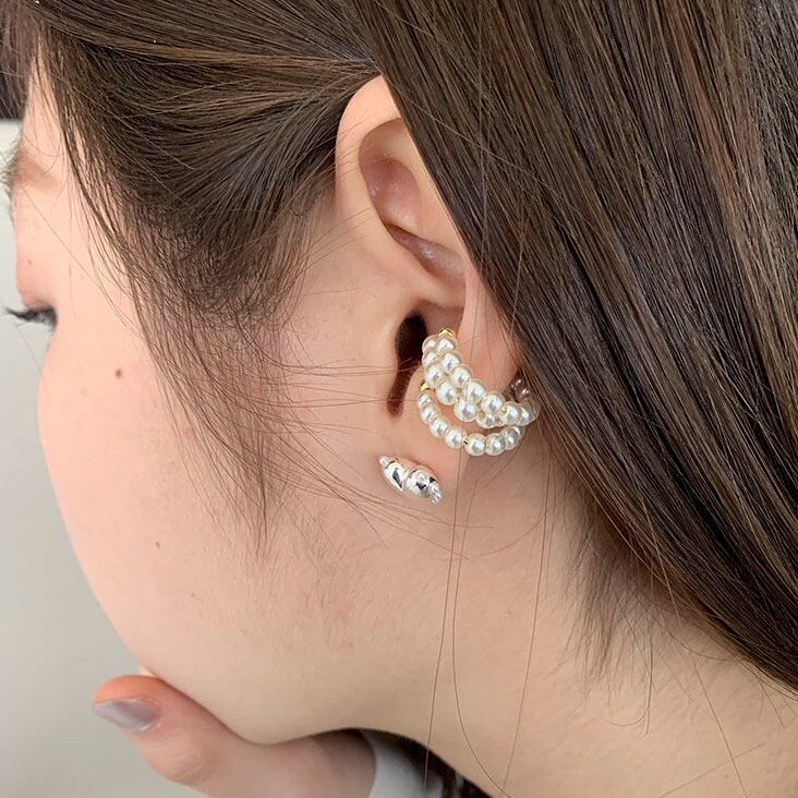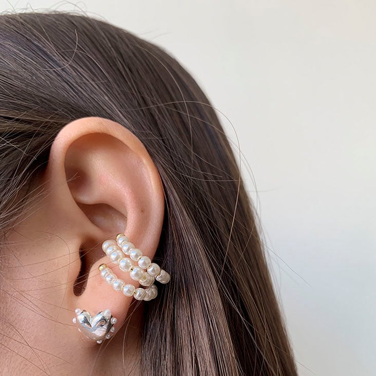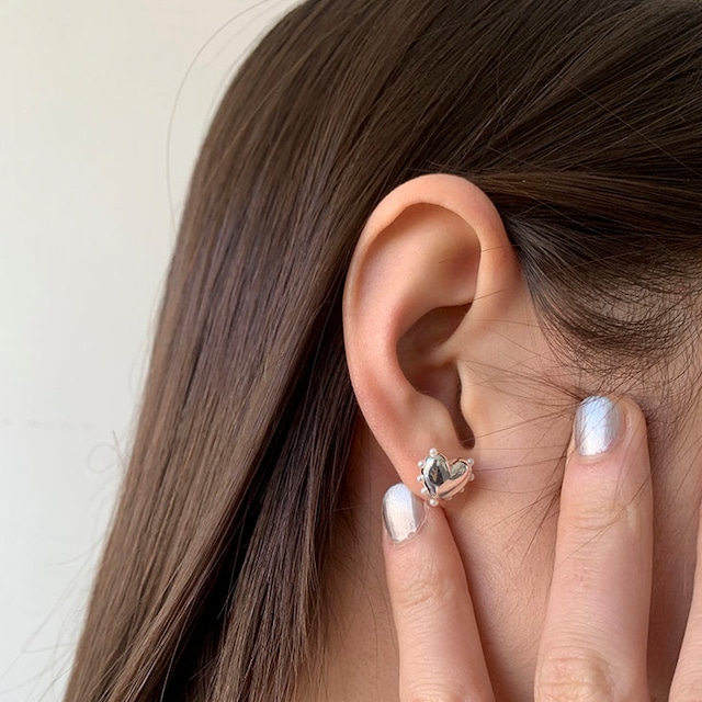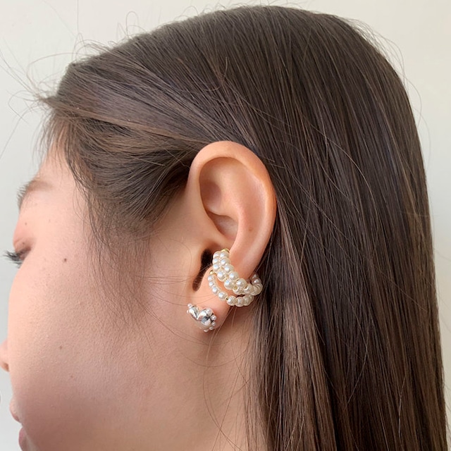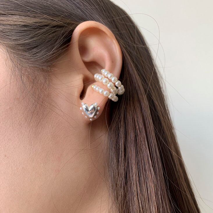 立体的なハートピアスと上品なパールイヤーカフを組み合わせたセットです!