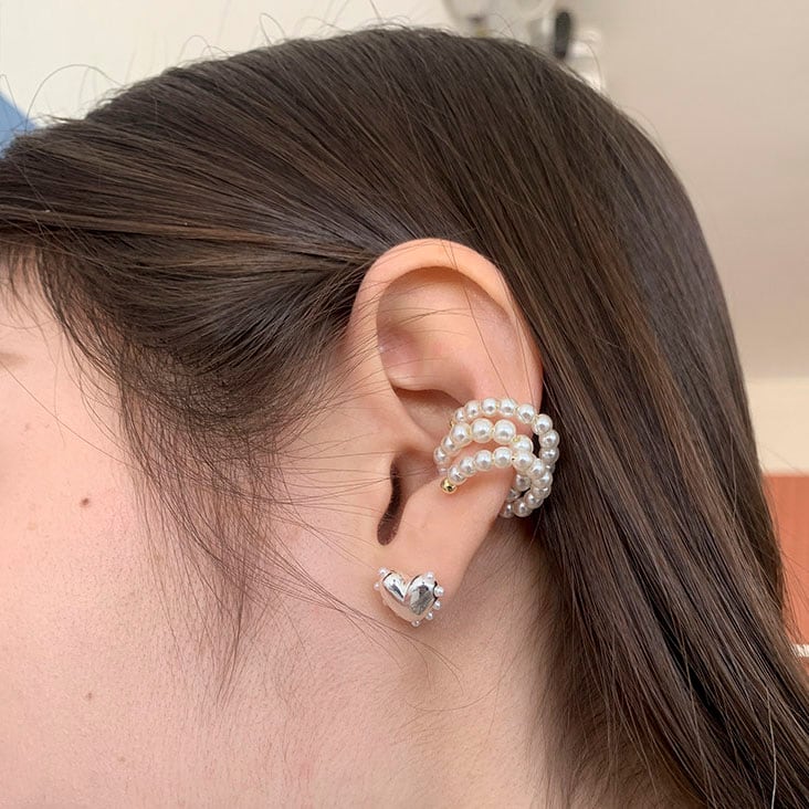 Heart earrings and pearl ear cuff set 2litr06187