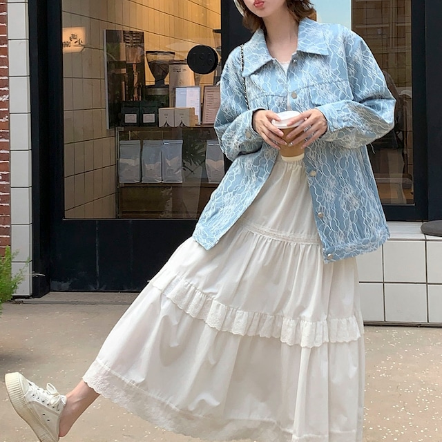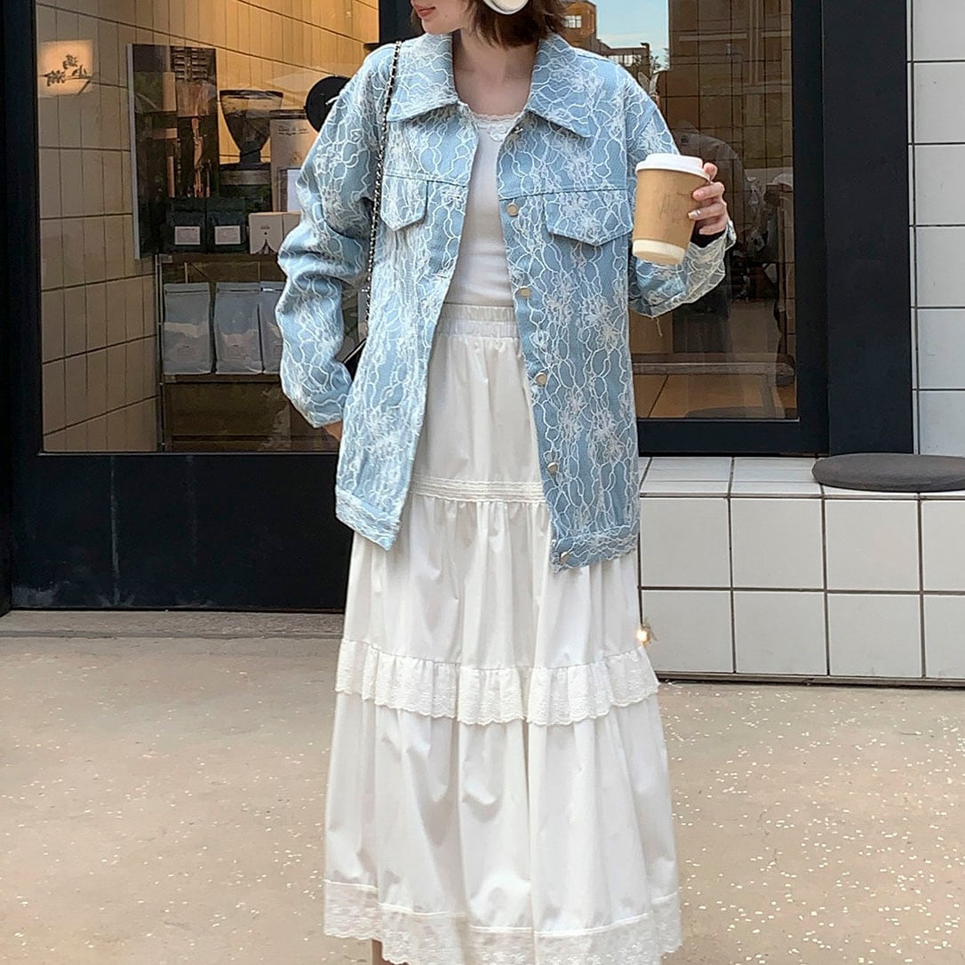 繊細なレース柄が目を惹く、華やかさたっぷりのデザインジャケット!