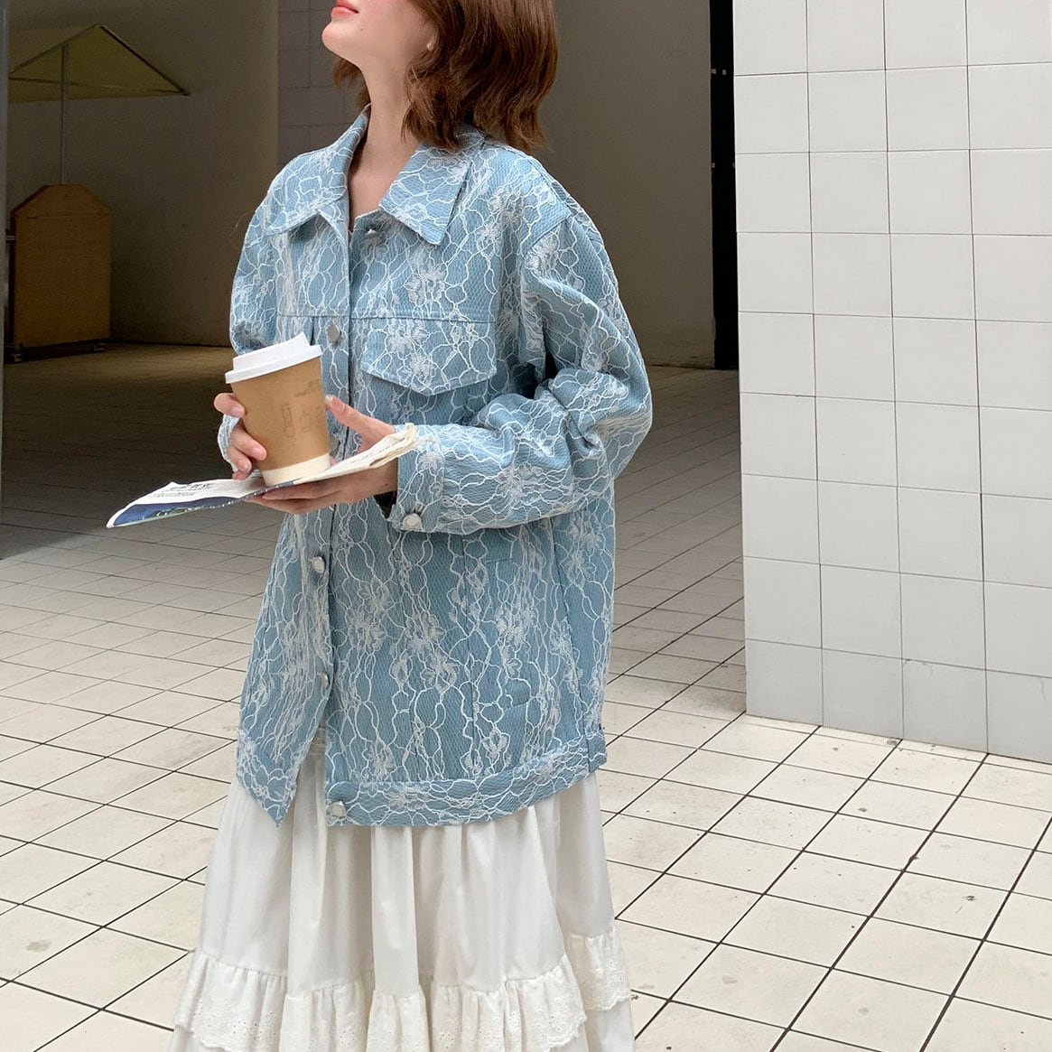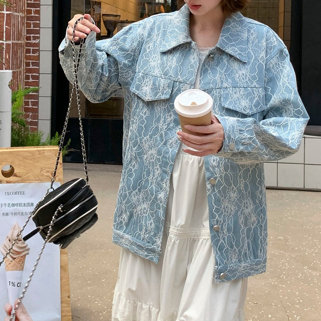 Lace oversized blue jacket 2litr06205