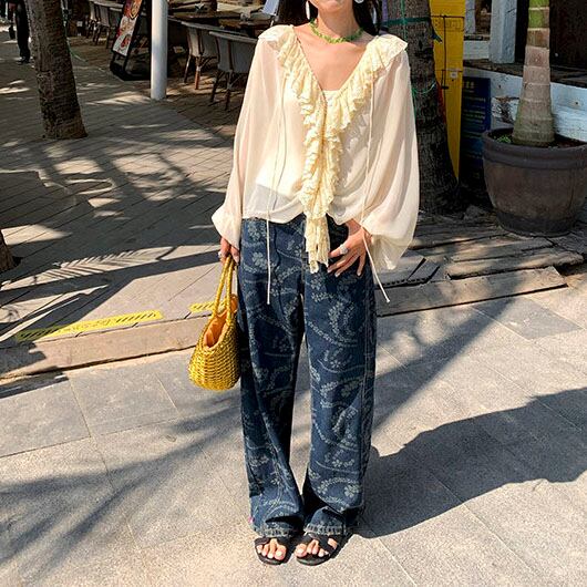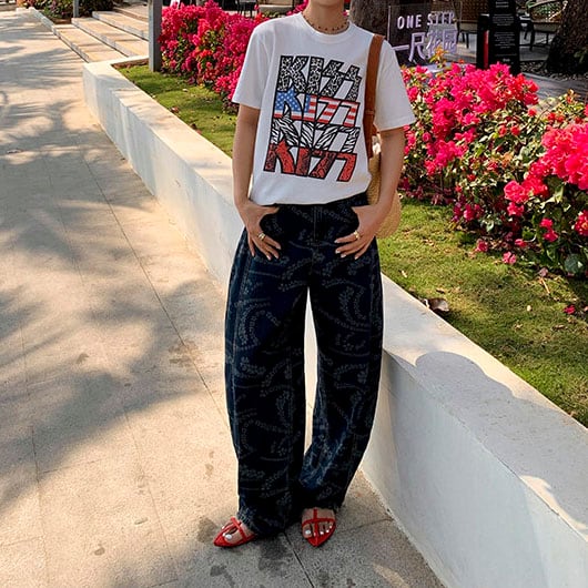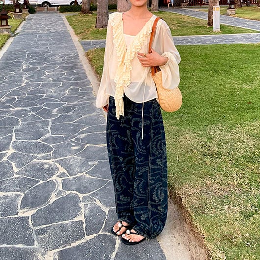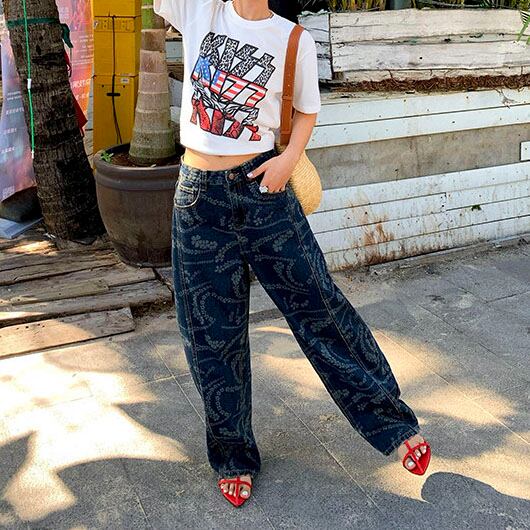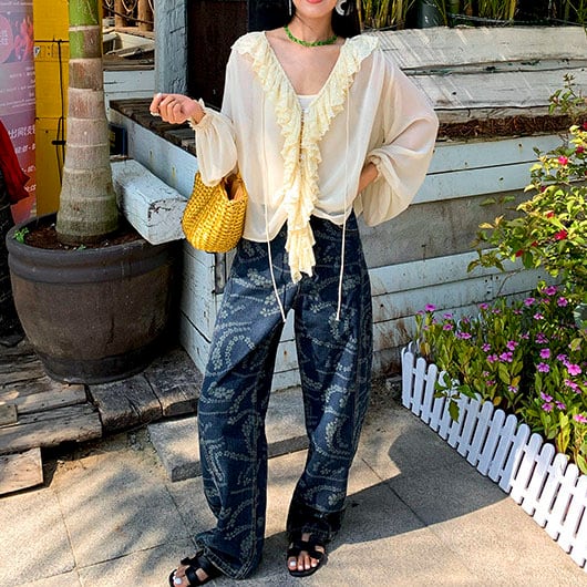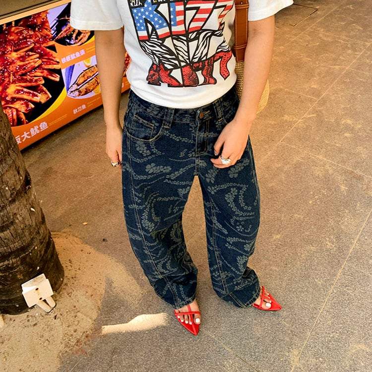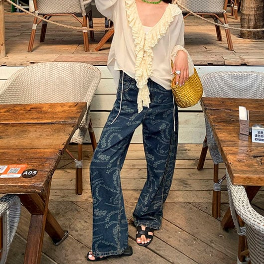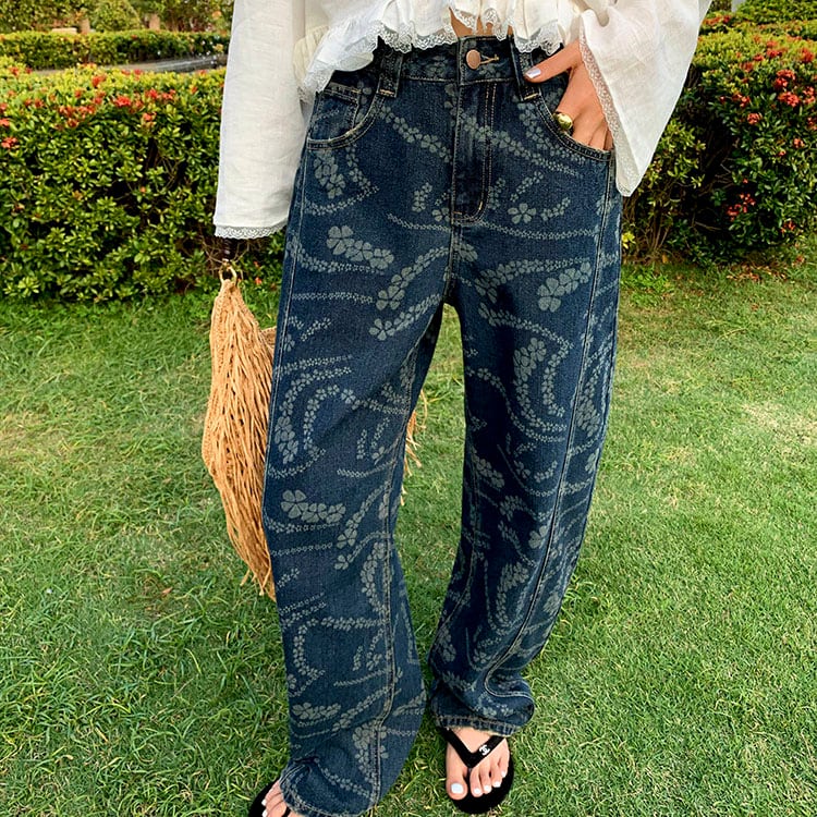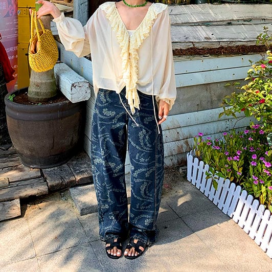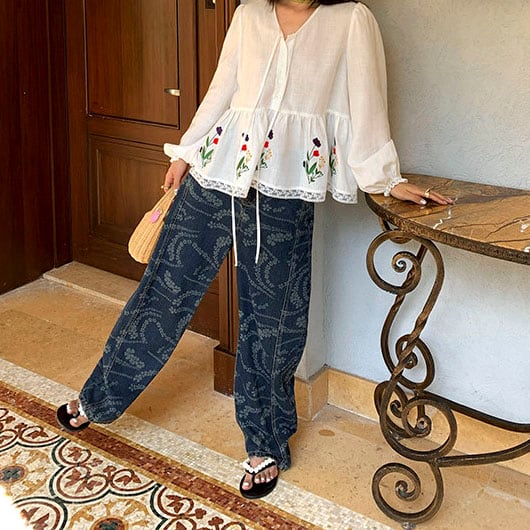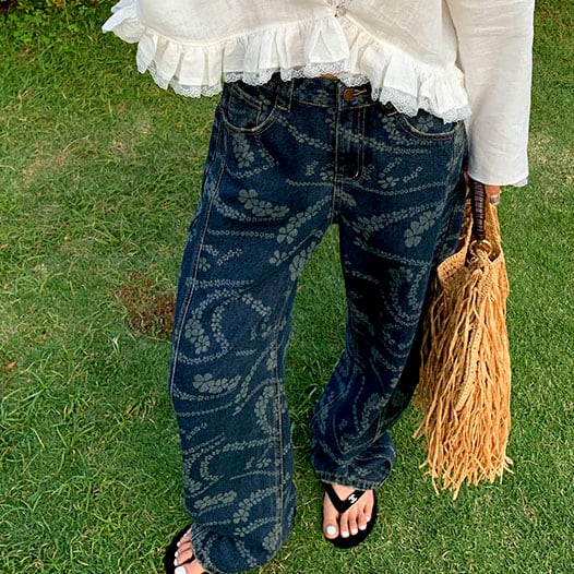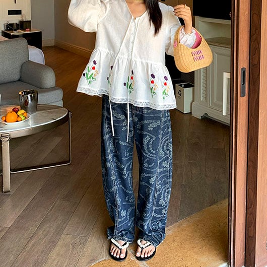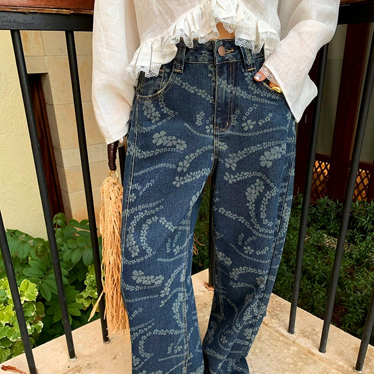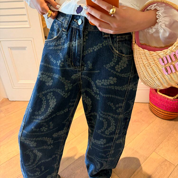 Flower print wide denim pants 2litr06227