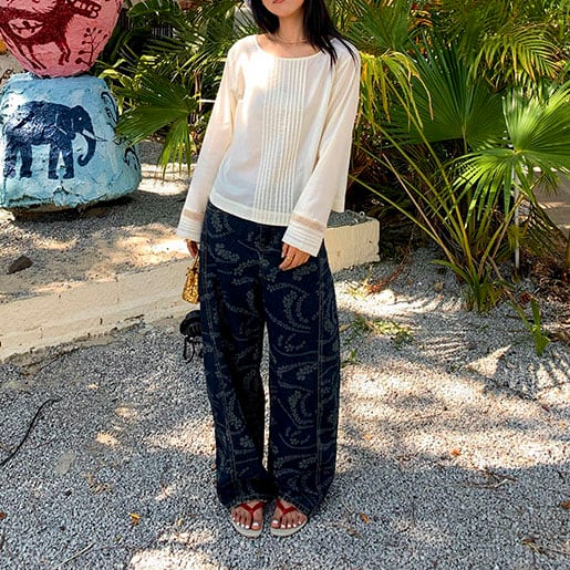 ゆったりワイドシルエットで体型カバーも叶う◎
