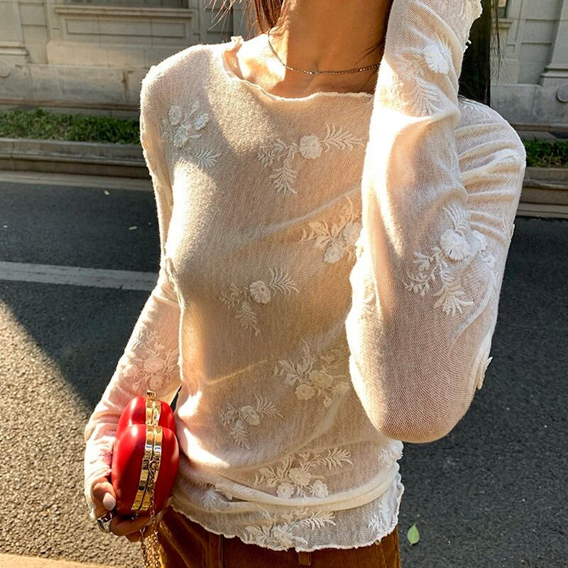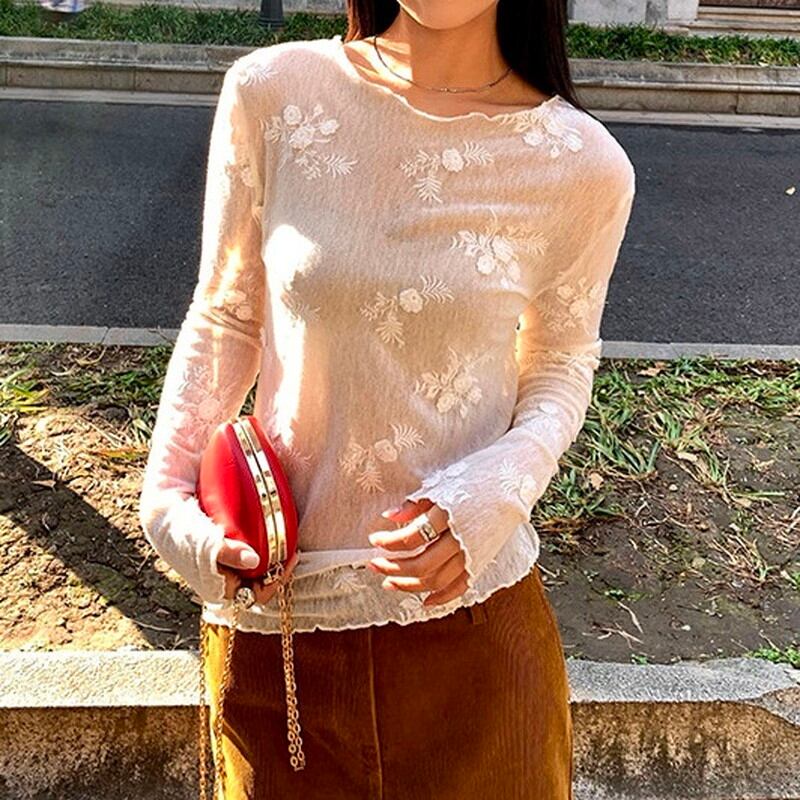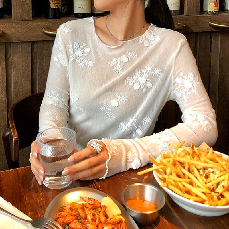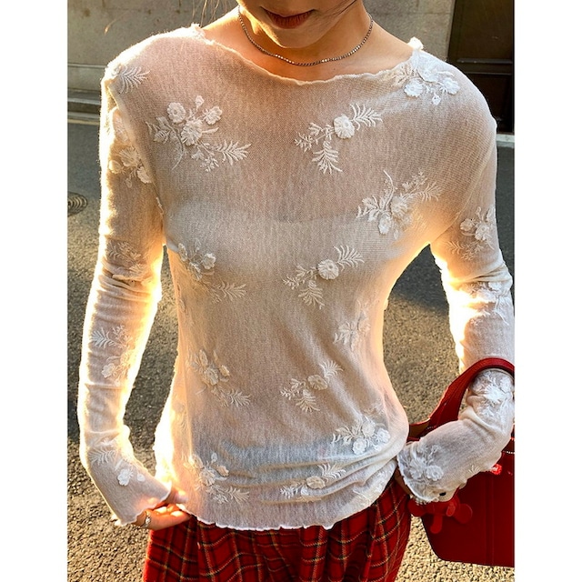 sheer embroidery flower mellow cutsew 2litr06239