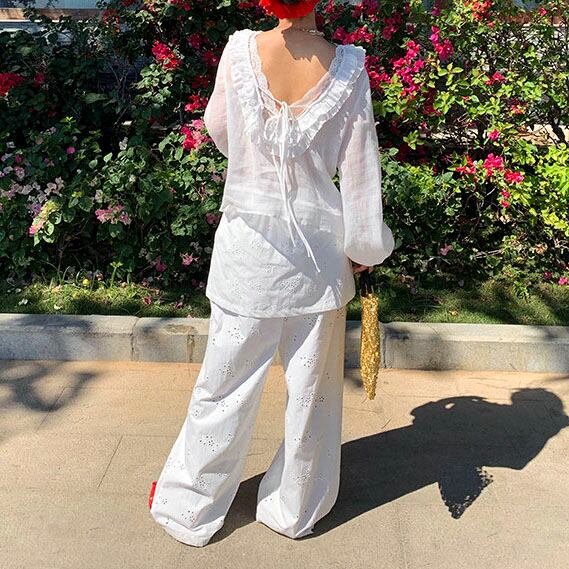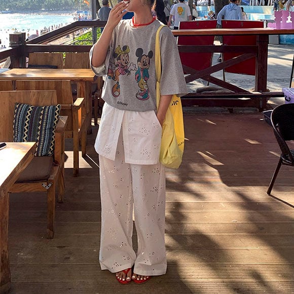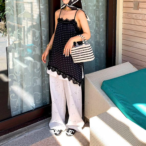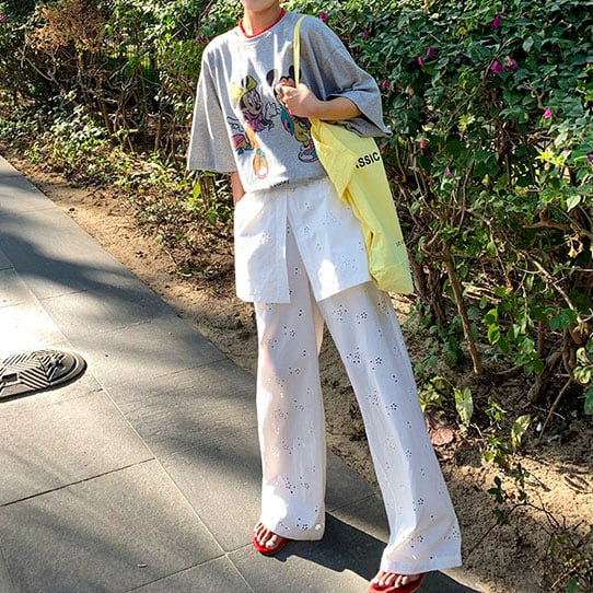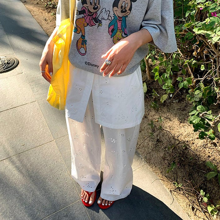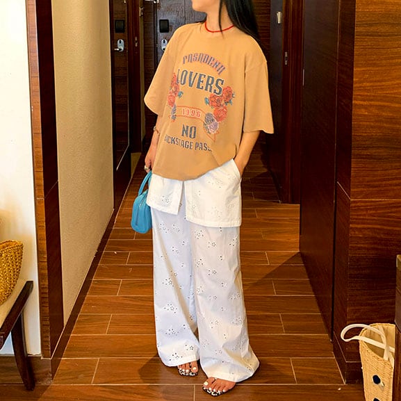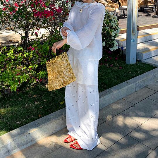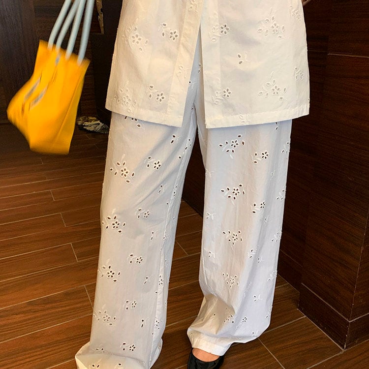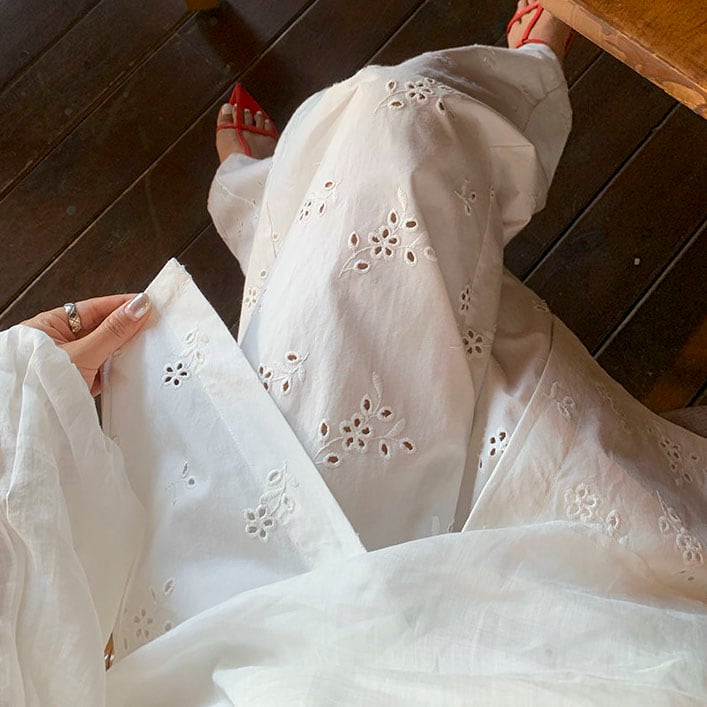 繊細なアイレット刺繍が映える上品ワイドパンツ!