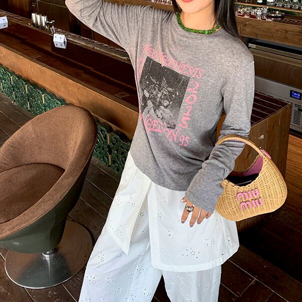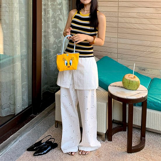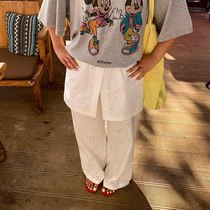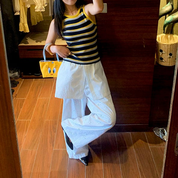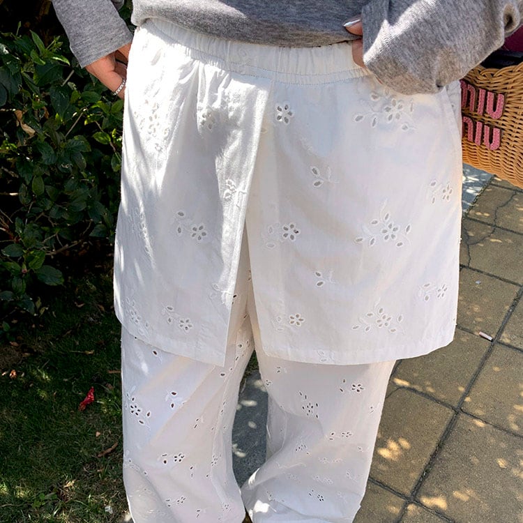 Eyelet lace layered wide pants 2litr06251