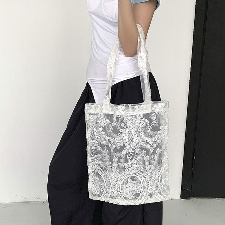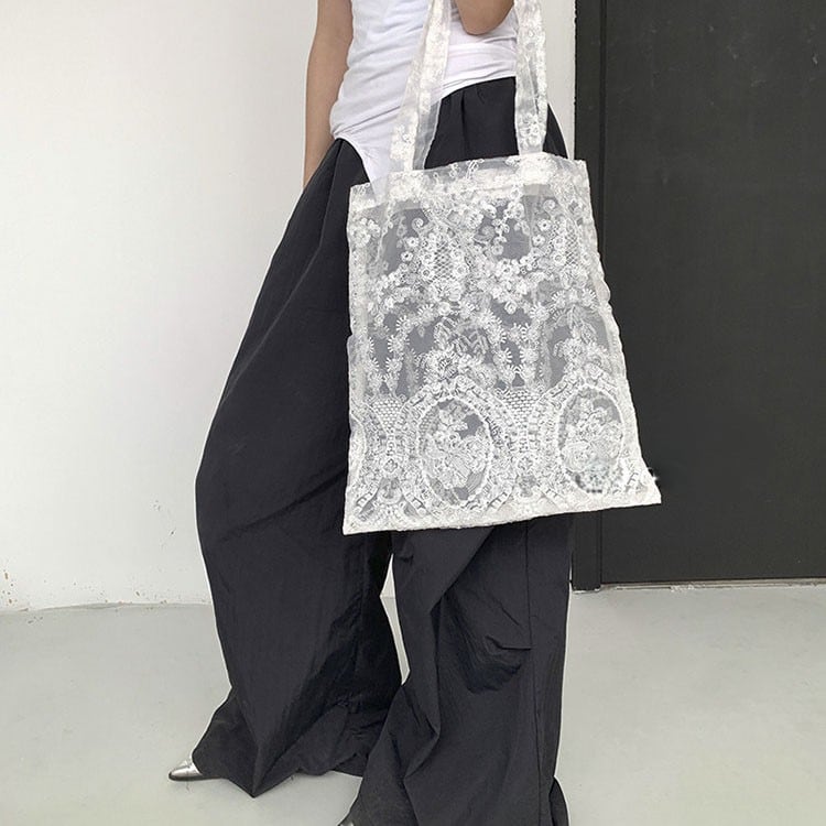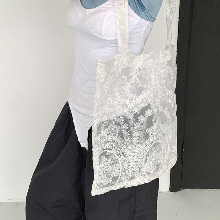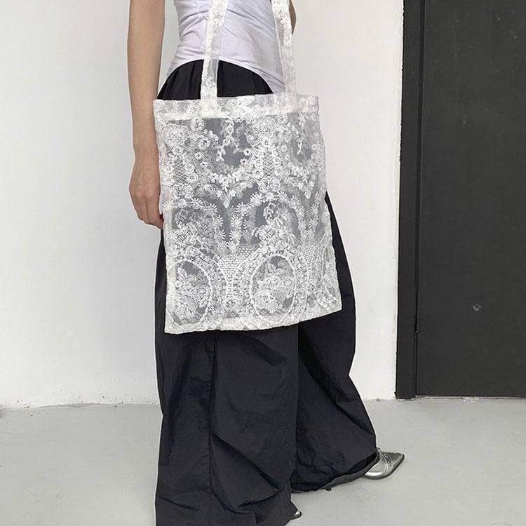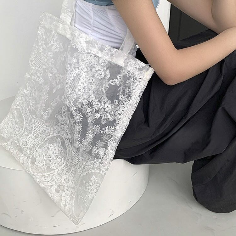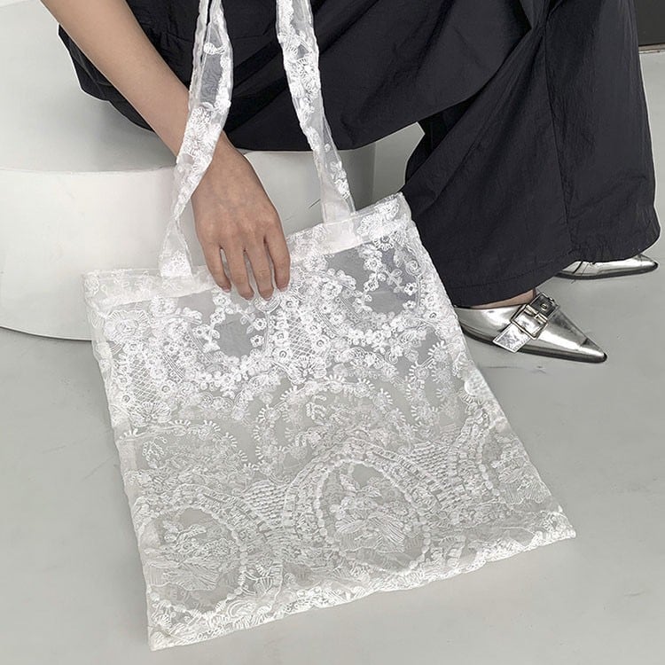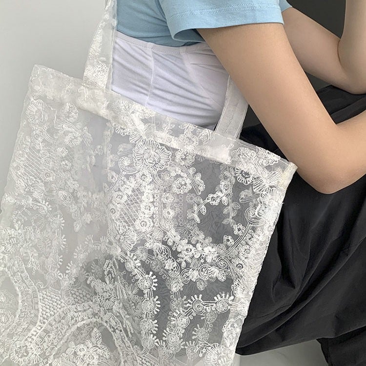 Floral lace sheer tote bag 2litr06232